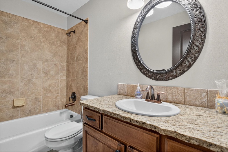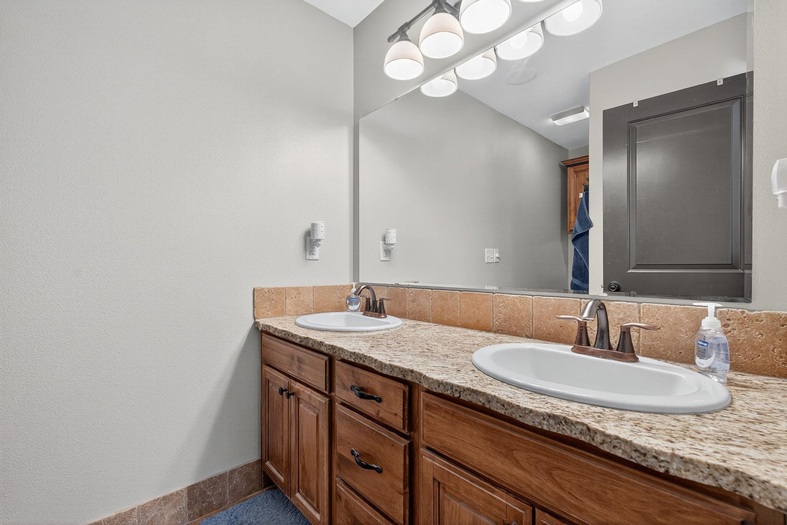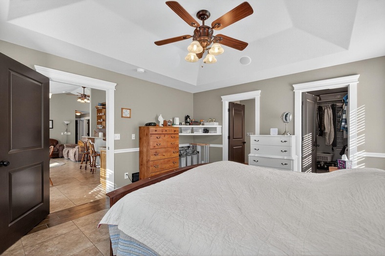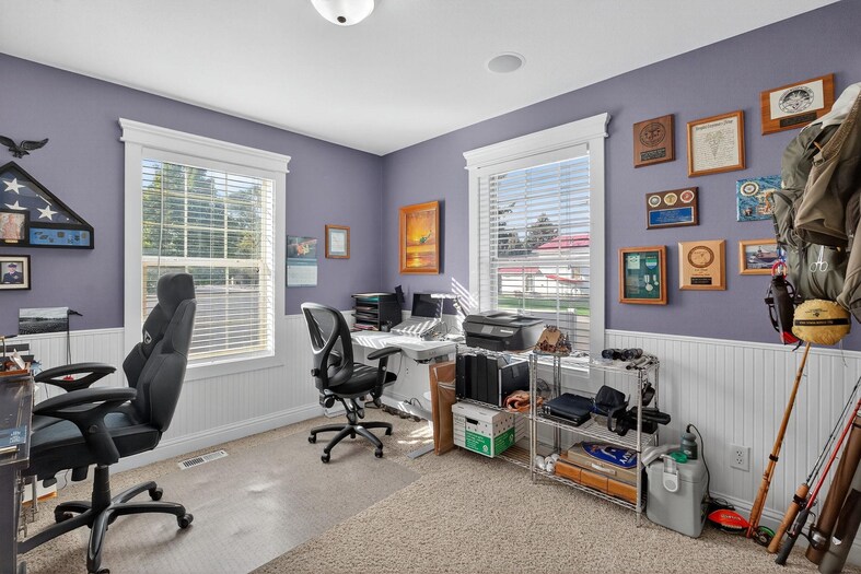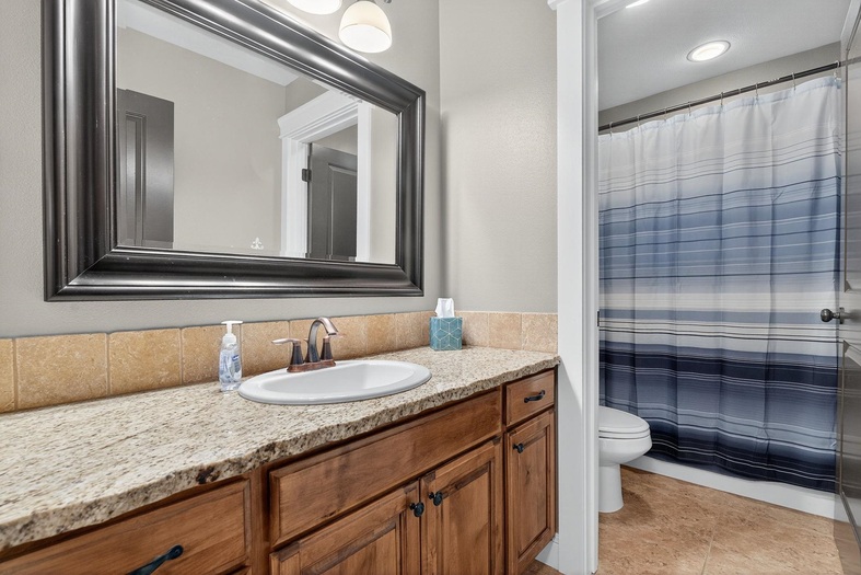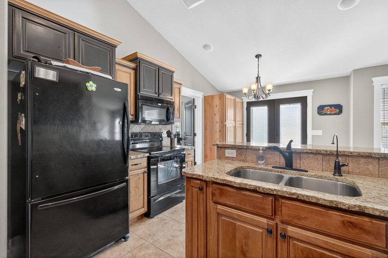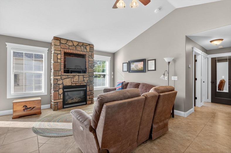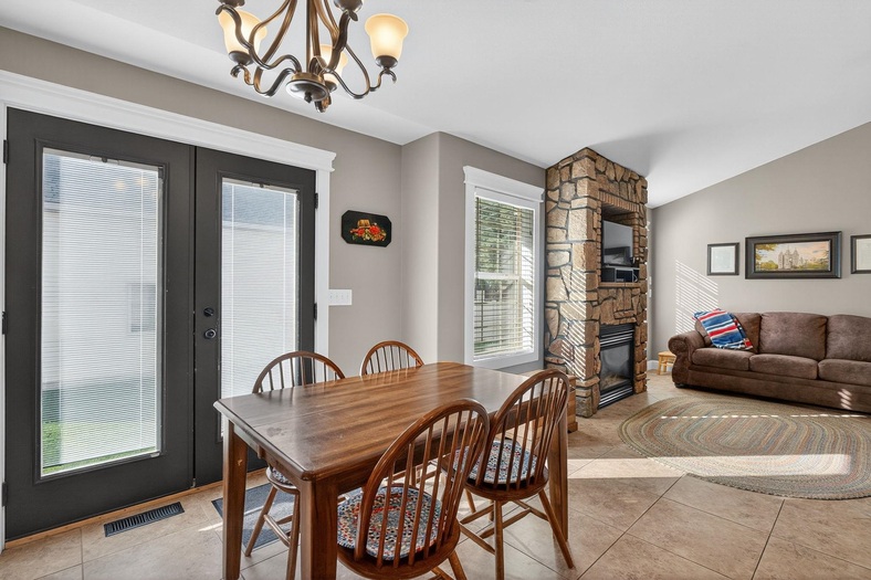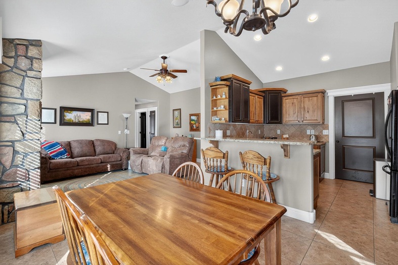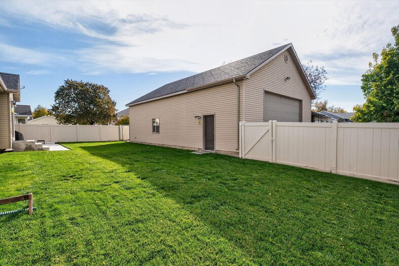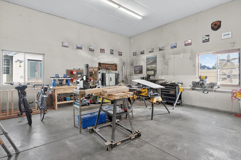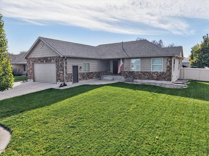 33' x 40' Heated SHOP! This 6-bedroom, 3-bath home offers style, comfort, and functionality throughout. Enjoy vaulted ceilings, granite countertops, and a cozy living area with a gas fireplace. The primary suite features a walk-in closet and private bath. The finished basement includes ample storage, a large family room perfect for entertaining complete with theater screen, projector, and sound system. Outside highlights include sprinkler system with optional use of irrigation water, hot tub wiring, a double-car garage plus a heated 33' x 40' shop with an 11' overhead door and included paint booth, compressor and metal shelving ideal for projects, vehicles, or hobbies. Located in a desirable area with convenient access to local amenities. Don't miss the opportunity to make this exceptional home yours!
