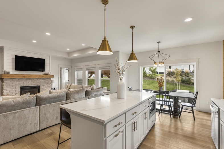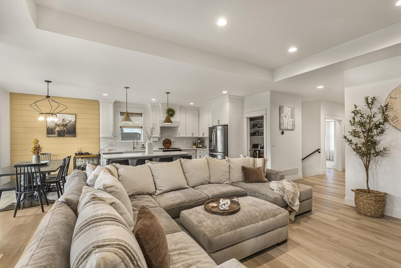 Welcome home to this beautiful, nearly new residence offering style, comfort, and thoughtful design inside and out. The inviting covered porch leads into a bright open-concept main floor filled with natural light and anchored by a cozy fireplace. The kitchen is a true highlight with stainless steel appliances, a spacious island, and a walk-in pantry perfect for organization and entertaining. The main floor features convenient living with a luxurious primary suite that includes a walk-in closet and private en suite bath. Downstairs, the fully finished basement adds even more living space with additional bedrooms, a full bathroom, and a large family room ideal for gatherings. Outside, enjoy the fully landscaped yard with plenty of room to relax or play. With 3.5 baths, a three-car garage, and move-in-ready condition, this home perfectly combines function, beauty, and modern living.