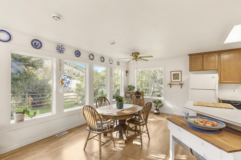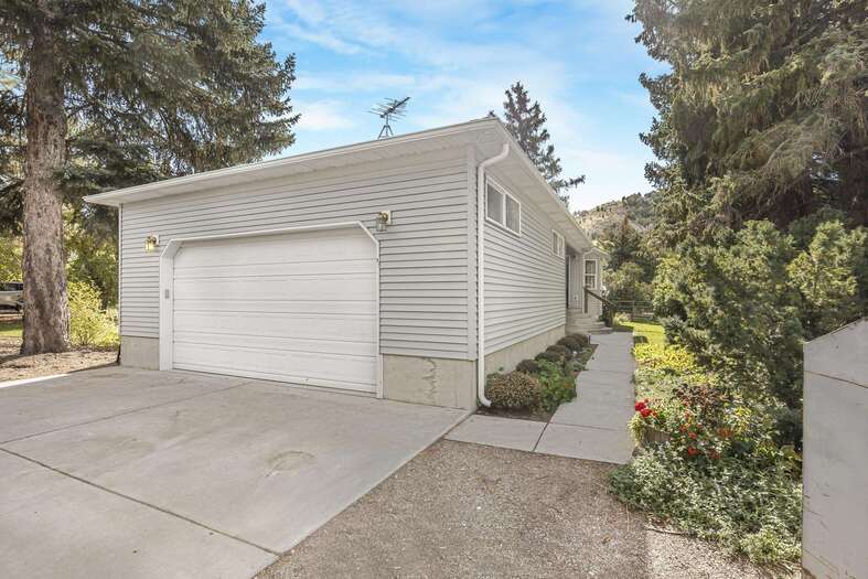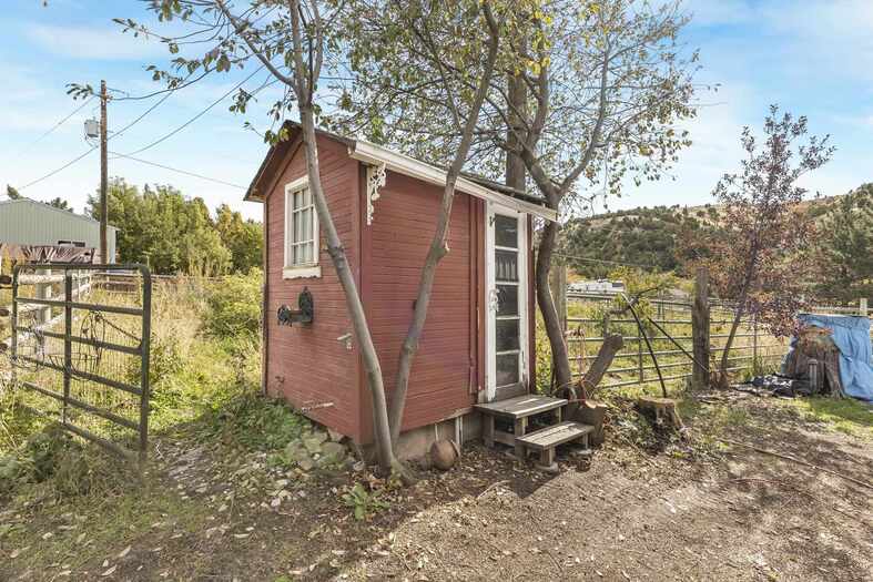 Welcome to 8767 W Pocatello Creek Road—where rural charm meets modern convenience. This 4-bedroom, 2-bath home sits on 1.6 acres and offers the perfect setup for a hobby farm or anyone seeking peaceful country living just minutes from city amenities. A main floor addition and interior updates created a bright, open layout featuring an expansive kitchen with mountain views, a tiled entryway, and inviting living spaces. The property is as functional as it is beautiful, with a 2-car garage, a small barn with gas, horse stalls, and a kiln, plus a chicken coop and an orchard boasting 27 mature fruit trees. Recent updates include a roof within 5 years, new septic system, replaced windows, and added insulation in the walls and ceiling for year-round comfort. The home has Vinyl siding, gas forced air heat, and a sprinkler system for easy maintenance. Enjoy 2 inches of irrigation water rights from the creek, city water service, and a shared easement providing access to the irrigation pump near the back of the property. With plenty of room for animals, gardening, or simply relaxing, this property is a rare find that perfectly blends rural living with everyday convenience.