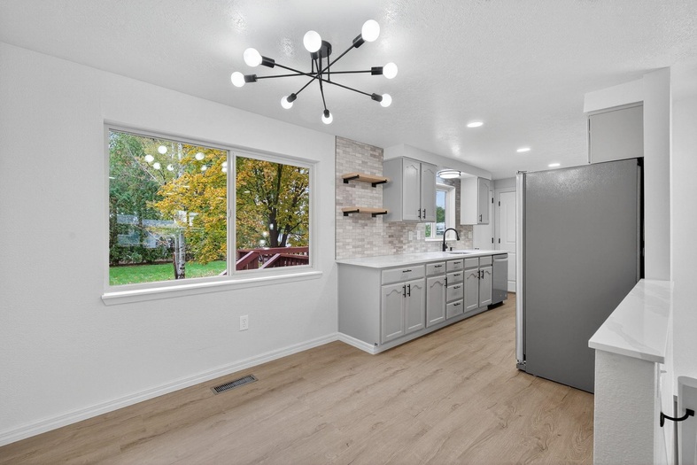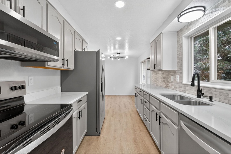 Remodeled with heart - Designed to welcome you home ! Welcome to this completely remodeled beauty! This stunning 5 bedroom, 2 bathroom home has a 2 car garage- beautifully updated from top to bottom. Step inside and fall in love with the brand new flooring, new texture , modern paint, and stylish lighting throughout. This home features a new gas furnace and central air conditioner, ensuring year round comfort and efficiency. Every detail has been thoughtfully designed to offer a fresh, modern feel while maintaining a warm, welcoming atmosphere. Whether you are entertaining in the large backyard or relaxing inside this home you will see it truly has it all! It even has a fenced in backyard, an oversized deck, a concrete drive for RV Parking with alley access, and a full sprinkler system. Call today for your private or virtual showing.