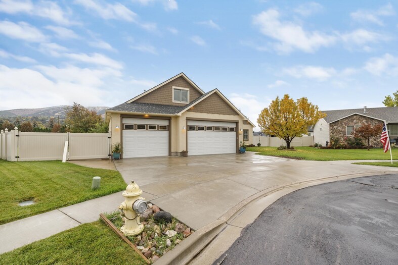 Welcome to this beautiful, custom-built 1½-story family home perfectly situated in one of Pocatello's most desirable neighborhoods! Tucked at the end of a quiet cul-de-sac, this property offers privacy, safety, and easy access to the South Valley Connector for a quick commute. Enjoy breathtaking mountain views, a large manicured yard, and nearby walking paths and golf courses for endless recreation right outside your door. Inside, you'll find thoughtful upgrades throughout, including elegant plantation blinds, an updated surge protection system, EMP protection, and a Generac whole-home generator—providing comfort, security, and peace of mind in all seasons. The spacious 3-car garage and extended driveway offer plenty of room for vehicles and storage. Located within walking distance of Indian Hills Elementary and the Edson Fichter Nature Area, this home combines modern convenience, outdoor lifestyle, and refined comfort in a truly unbeatable location.
