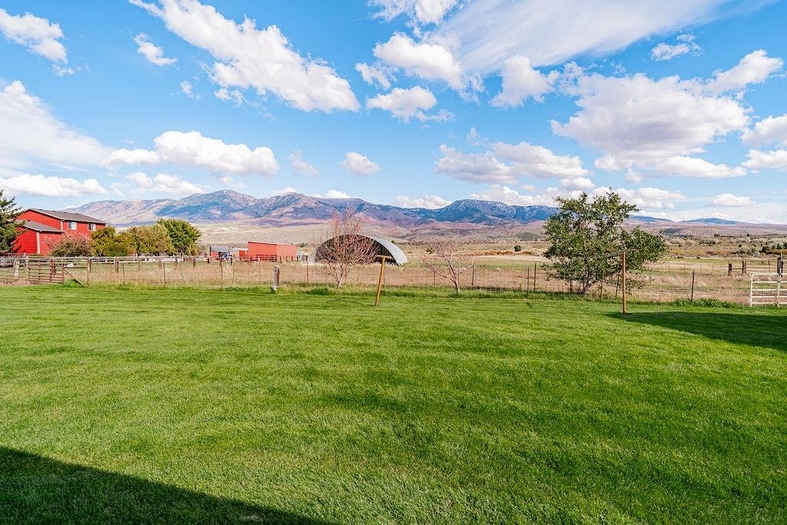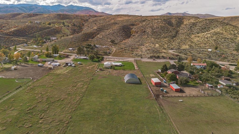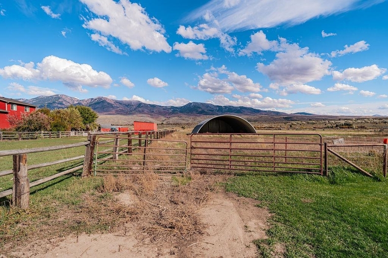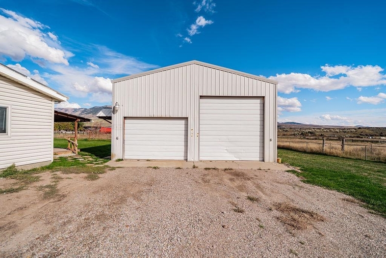 Escape to peaceful rural living with this affordable manufactured home on over 10 acres - surrounded by mountain views, breathtaking open space and a year-round natural creek running through the property. This home is priced to move and offers freedom with no CCRs, allowing full control of ownership and use. Bring your livestock—there's a fenced pasture, outbuildings, and plenty of space to roam. A large shop with a loft and RV-height door is ideal for projects, equipment, or recreational toys, while a bonus Quonset hut provides additional storage for RVs, boats, or farm use. Inside, enjoy a comfortable single-level layout with a split bedroom design. The primary suite features an ensuite bath and walk-in closet, while two additional bedrooms and a full bath sit on the opposite side for added privacy. The kitchen comes equipped with appliances and offers mountain views from the window and covered patio beyond. Additionally, the home features a metal roof, central air, and a landscaped yard with auto sprinklers—everything you need for country comfort. Peaceful, private, and practical—this property blends rural charm with everyday convenience.