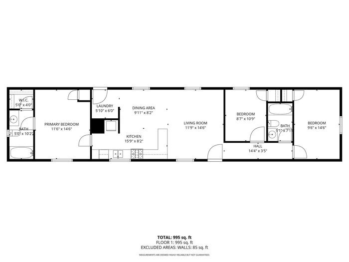 3 Bedrooms, 2 Bathrooms, Living Room, Kitchen, Laundry Room