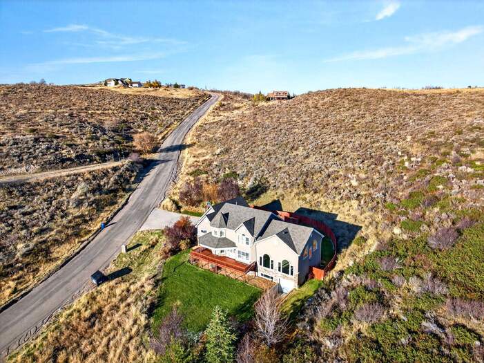 Expansive living meets breathtaking mountain views in this spacious two-story home situated on just over 5 acres—with the unique opportunity to add more contiguous land! This well-designed property features 6 bedrooms, 3 bathrooms, a dedicated office, and a welcoming walk-in entry that flows effortlessly into an open living space. The main-floor bonus room boasts extra-high ceilings and abundant natural light, while a cozy gas fireplace insert adds warmth and charm to the main living area. Step outside to a large deck—perfect for entertaining or soaking in the serene landscape. A massive basement storage area offers flexibility for future finished living space or additional garage capacity. The home runs on well water, septic, and includes a propane-powered generator, offering peace of mind and self-sufficiency. Enjoy the tranquility of rural living with the space and functionality for any lifestyle, all while being surrounded by Idaho's signature natural beauty.