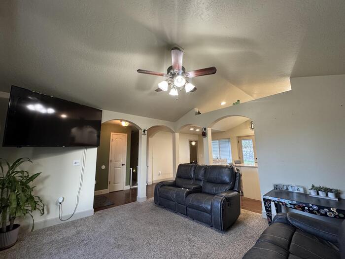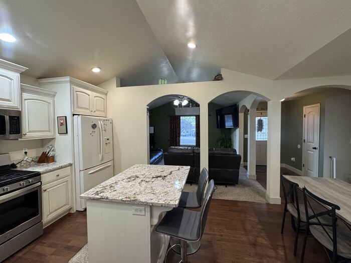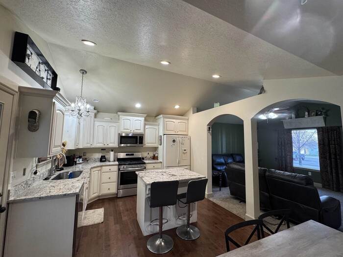 Welcome home to this charming 2007-built property offering 1,515 sq. ft. on the main level with 3 bedrooms and 2 full baths. The open-concept layout features beautiful hardwood floors, elegant archways, and a bright living room that flows seamlessly into the kitchen—complete with granite countertops and crisp white cabinetry. Enjoy peaceful evenings on the covered back porch overlooking the spacious 0.28-acre lot. The double car garage provides plenty of storage and convenience. The basement includes one finished room, with the rest ready for your personal touch—perfect for adding living space and building equity. Located within the Edahow Elementary, Franklin Junior High, and Century High School boundaries, this home is an incredible find you don't want to miss!