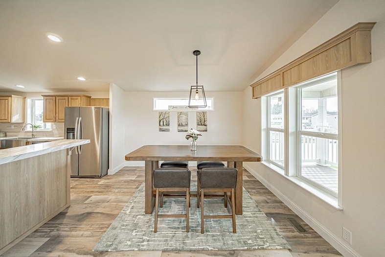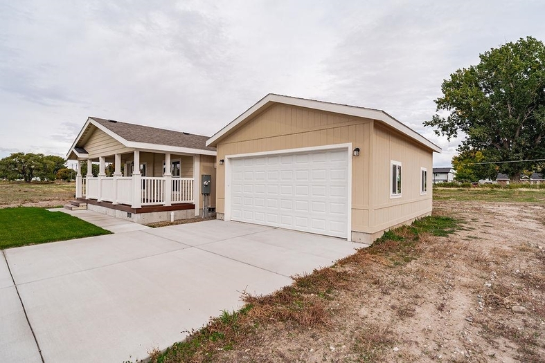 BRAND NEW SINGLE-LEVEL LIVING WITH MODERN COMFORT AND STYLE. Experience exceptional quality and design as this home combines charm and everyday practicality with energy-efficient features. The open concept layout features vaulted ceilings that enhance the sense of space and light. The warm kitchen flows seamlessly into the living and dining area-ideal for everyday living and entertaining. Kitchen offers plenty of custom cabinets and counter space with pantry, farm sink and stainless appliances. The primary suite includes wonderful ensuite with corner soaker tub, walk-in shower and separate walk-in closet. The wide hallway leads to 2 additional bedrooms and laundry room which leads to the convenient 2 car garage offering ample parking and storage. Enjoy mornings on the covered front porch or unwind in the evenings in this quiet neighborhood. Exterior of home is constructed with durable 50-year siding and 30-year roof. Builder is also offering 1 year warranty. You can't beat that! Come take a look!