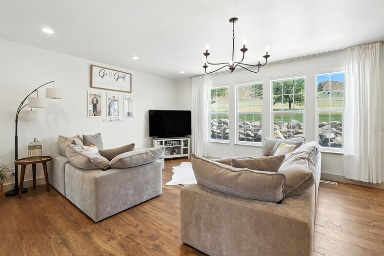 Gorgeous home located in the highly sought-after New Canyon area, just minutes north of Malad, Idaho. Set on 4.6 acres with panoramic mountain and valley views, this property offers the perfect blend of privacy and convenience-just a short drive to I-15. Built in 2021, the spacious two-story home features 3,500 sq ft, 4 bedrooms, and 5 bathrooms, with the potential to convert to 6 bedrooms by adding closets. Ideal for remote work with fiber internet and CAT-6 ethernet throughout. The vaulted entry opens to a large living room with a cozy fireplace and flows into a stunning gourmet kitchen with an oversized island, premium range, wood-burning stove, two dishwashers, and expansive picture windows. Two laundry hookups, including one in the primary suite walk-in closet, add function and ease. The outdoor space is equally impressive-fully landscaped with water spigots and power run to the large shed and fenced area that has the two white and black chicken coops. Additional upgrades include tankless water heater, kitchen sink water purifier, remote-controlled roller shades, and included refrigerator, barn, and chicken coop-ready for animals or livestock. Why wait to build when you can own a move-in-ready, nearly new home in one of Malad's most scenic locations? Buyer to verify all information.