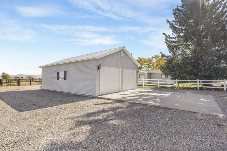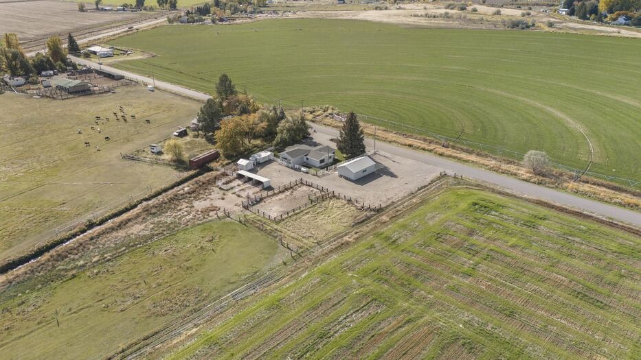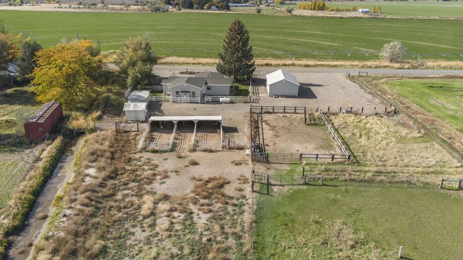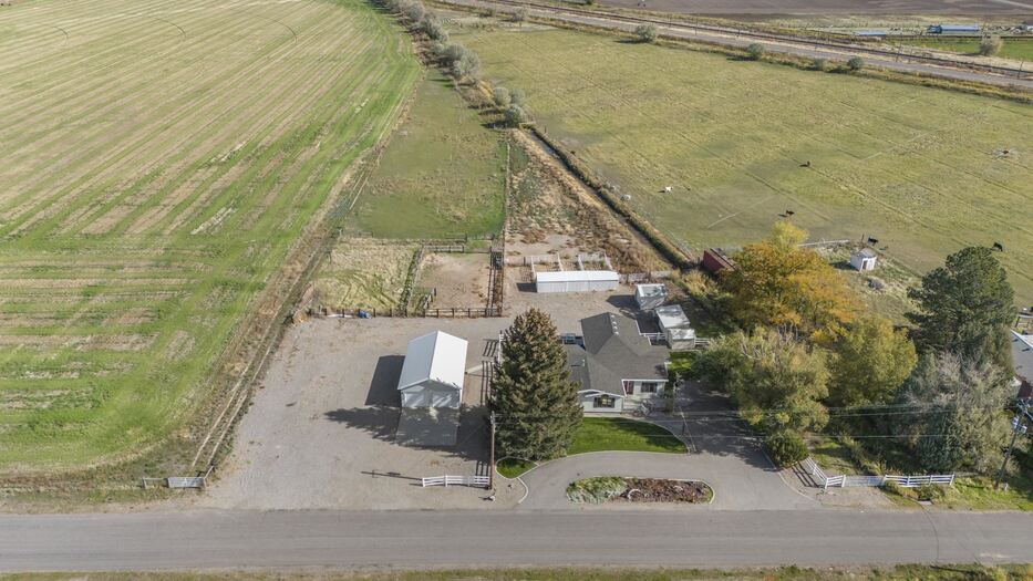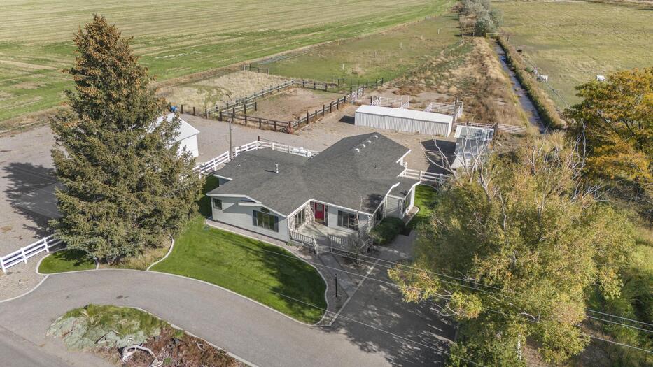 Are you looking for the perfect small farm? Where you can grow your crops & have your animals too? This has it all and so much more! A 1759 sq. ft. home on 1.5 acres with 3 beds, 2 baths, outbuildings, & corrals, all situated next to 34 irrigated acres of farm ground. Total of 35.6 acres. The house is spacious with a large living area, 2 cozy fireplaces, and gorgeous wood beams on the ceiling. In the kitchen there are custom cabinets accented by granite countertops, and plenty of storage room. The out buildings are ample with the 2 car garage/shop which is insulateded, plus a tack shed, a couple other sheds, and the loafing shed with panels to keep your animals. All of the buildings have electricity to them & there is an automatic waterer for the livestock. Not to mention the beautifully landscaped yard with curbing & vinyl fence. The 34 acres of farm ground is under a pivot with a small section of wheel line & hand lines. It has been farmed for years, currently in grain and some years in potatoes. This property really has it all & it's not too far from town! Part of the home was orginally manufactured but the additions & upgrades are beautiful. The home & farm ground can be sold seperately.
