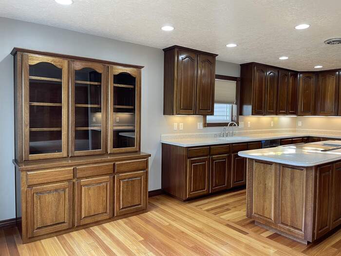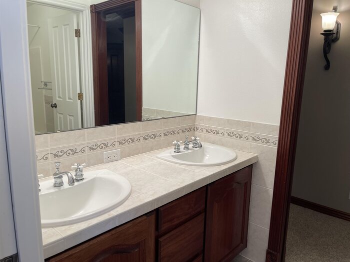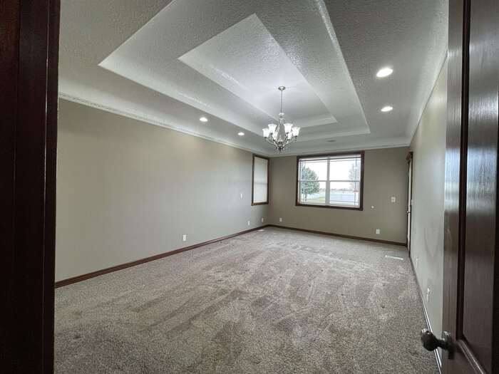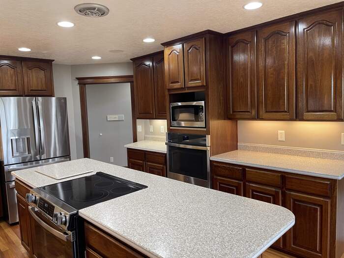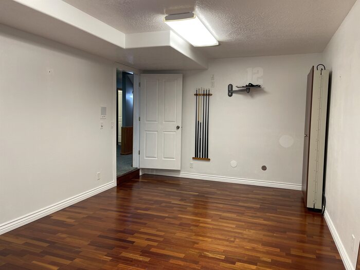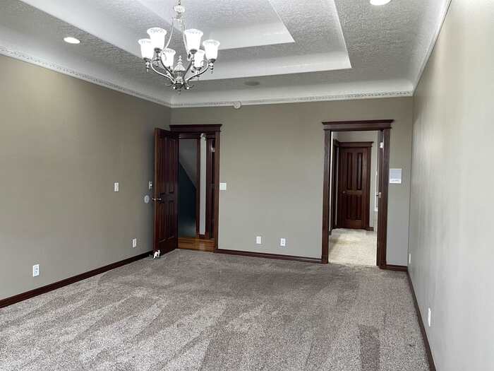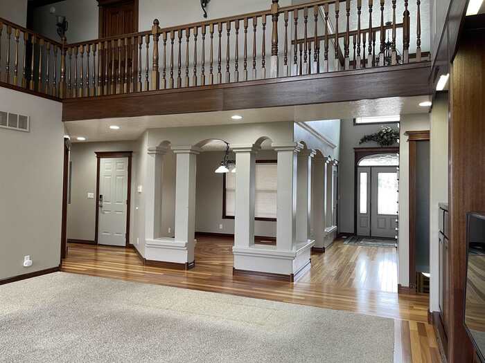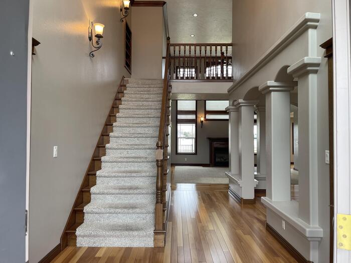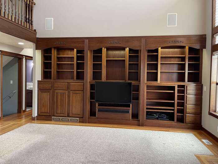 Stunning custom-designed home loaded with upgrades and thoughtful details throughout! The main level features lyptus wood flooring, a versatile living room/office, and a spacious family room with 17-ft ceilings, custom built-ins, gas fireplace, and open catwalk. A half bath leads to the beautiful primary suite with coved tray ceiling, new bath with double sinks, granite counters, soaker tub, walk-in shower, and two walk-in closets with custom shelving. The kitchen includes custom cabinets, stainless appliances, new built-in range, wall oven, microwave, and built-in china hutch. Access the new Trex deck from the kitchen or primary suite and enjoy the huge backyard with a cemented basketball court and space for a future shop. Main-level laundry offers a folding counter, sink, cabinetry, ironing board, and laundry chute. Upstairs features 4 bedrooms, 2 baths, and a bonus room over the 3-car garage. The fully finished basement includes 2 bedrooms, a bath, 3 storage rooms, large great room with pool table, kitchenette/bar, built-in desk, exercise room. Major mechanicals: 2 furnaces, 2 gas water heaters, AC, and whole-house intercom. The insulated, sheet-rocked garage has newer doors. Truly a must-see! Buyer to verify sq ft.
