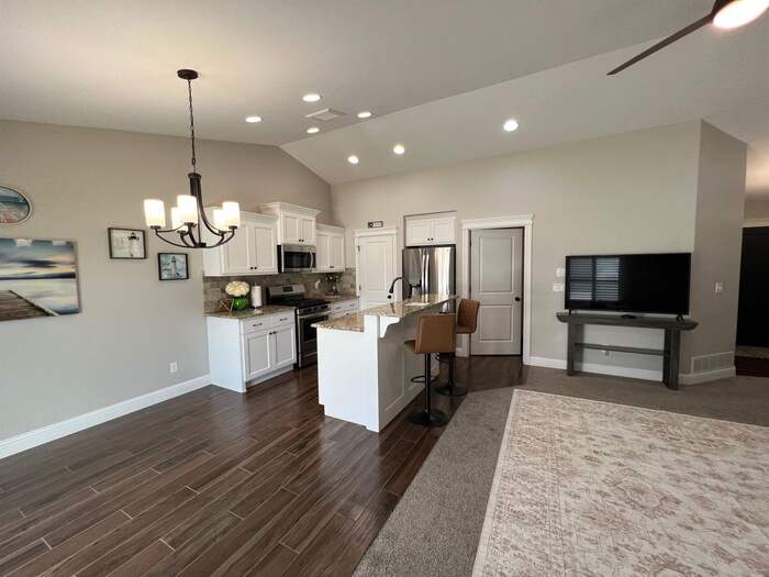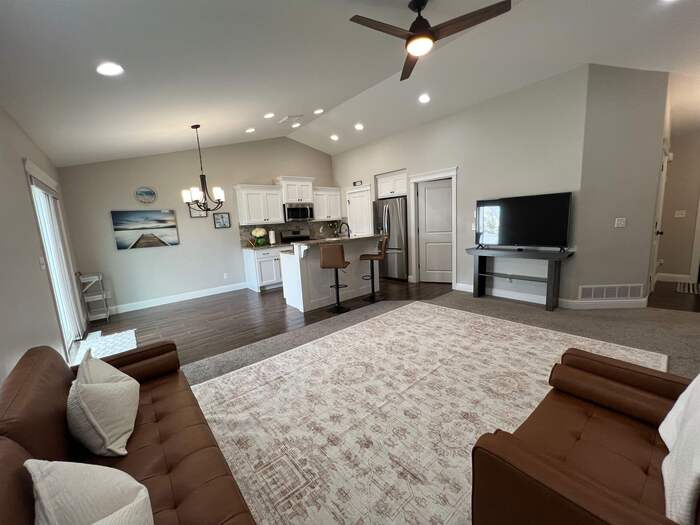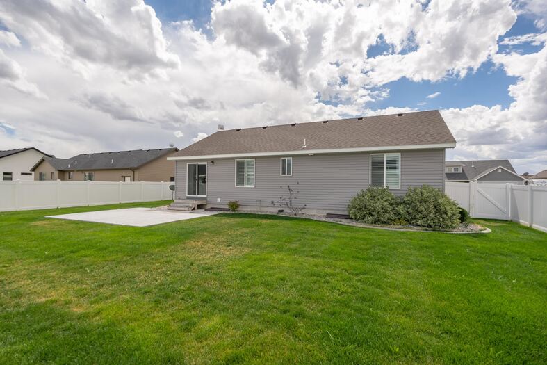 Charming home at 347 Rock Hill Lane in Idaho Falls, ID. This well-maintained, move-in-ready home features 6 bedrooms, 3 baths, and is located in a quiet, family-friendly neighborhood. The exterior offers excellent curb appeal with natural stone accents, classic siding, and a landscaped front yard. Enjoy relaxing on the covered front porch. Inside, the open-concept layout is filled with natural light. The spacious living room flows into a modern kitchen with stainless steel appliances, granite countertops, and ample cabinet space. The adjacent dining area is ideal for everyday meals or entertaining. The main-floor primary suite includes a walk-in closet and an en-suite bath with a soaking tub. In the basement, you'll find generously sized bedrooms perfect for guests, family, or a home office. The fully fenced backyard features a large patio, perfect for outdoor entertaining. Conveniently located near schools, parks, shopping, and commuter routes. A must-see in Idaho Falls!