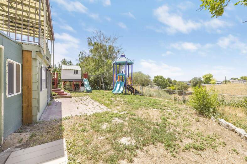 Cozy & full of charm, this updated Pocatello home offers rare privacy with no backyard neighbors & scenic ravine views. Enjoy two spacious decks, a custom playground with slides, swings & clubhouse, plus a sunroom wired for a hot tub. Inside, the 3 bed, 3 bath layout includes a large master with walk-in closet, en-suite, & private deck access. Features include real wood cabinets, tile counters, vintage glass stovetop, one wood fireplace on the main floor, & a walk-out basement. The laundry/craft room shines with built-ins, desk nook & storage. Newer gas furnace & AC, new carpet, fresh paint, & updated flooring. The basement has possibility to add additional bedrooms. Close to shopping, restaurants & I-15 access. A perfect blend of peace, play & convenience.