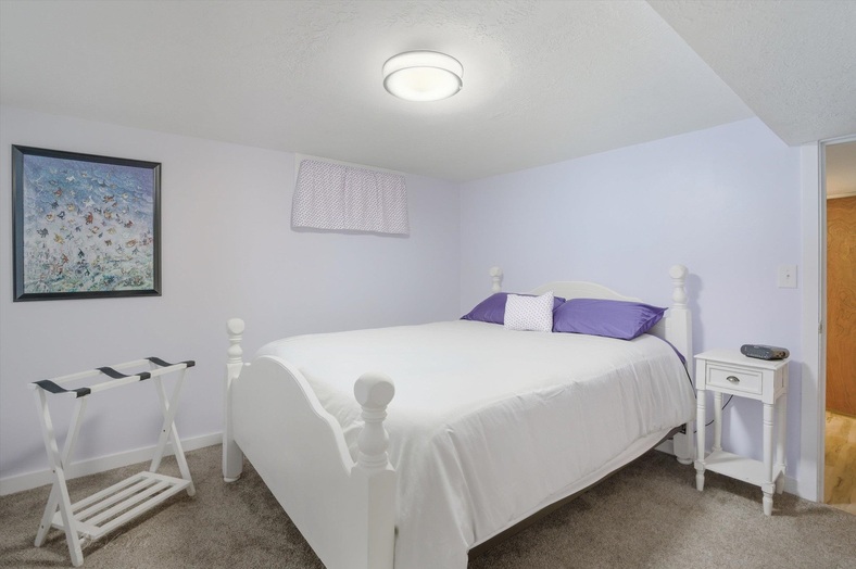 EXTREMELY well maintained 4 BR, 2 BA home w/ MANY UPDATES. NEW: roof, egress window, rain gutter/gutter guards w/ transferrable warranty, wiring downstairs, breaker box, plank flooring in basement, carpet in (2) basement BR's, Fridge, stove/oven, dishwasher, garage door opener, hydroblast plumbing in kitchen sink, composite deck, lights, paint, plantation shutters, water heater & wood fence in backyard to front right side. Inviting entryway to bright living room w/ hardwood floors, gas fireplace/brick hearth & wood plank wall, dining area, kitchen- all appliances included, tiled full BA, (2) bright BR's & ample storage. Basement was gutted to the studs: family room w/ plank flooring, freestanding gas stove, BR w/ built in cabinets, BR w/ egress window, full BA & laundry room-washer dryer included. Private backyard w/ raised garden beds, paver patio, composite deck, over sized double garage & backs up to the alley. Tastefully decorated- some furniture negotiable. Being as an Airbnb so appointment needed.