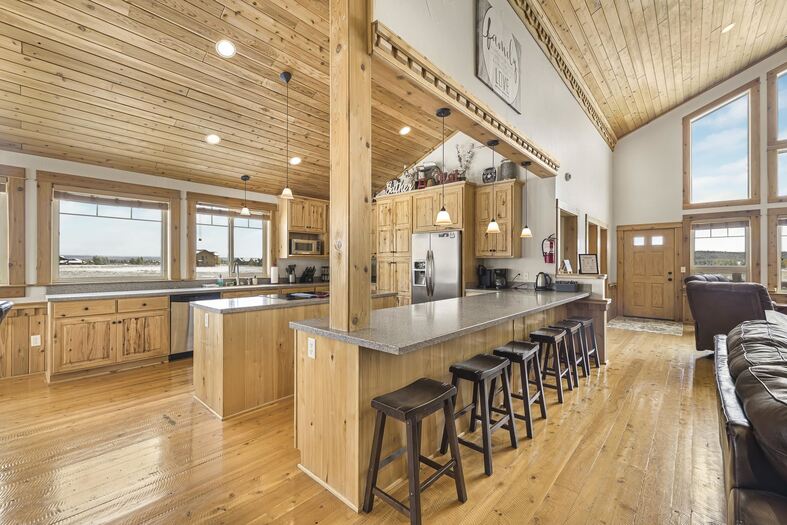 Custom Built Cabin with Incredible Craftsmanship and Wood Working Skill that you just don't see Anymore! This Cabin is the Perfect Gathering Place for Large Families and Retreats offering 7 bedrooms, 4 Full Bathrooms and a Spacious Open Floor Plan. You will love the Soaring Vaulted Ceilings and Expansive Wall of Windows for Viewing the Sunrise, Sunset and 360 degree Forested Mountain Views. Main Floor Master Bedroom with an En-Suite Master Bathroom offering a Large Jetted Tub and Walk in Shower. Enjoy the Rustic but Luxurious Finishes such as Hand Sawn Hard Wood Floors, Rocked Gas Fireplaces and Granite Throughout. Located in the Gated Waterfront Community of Centennial Mountain Shores Subdivision. Expansive 1.8 acre lot with Plenty of Parking and Room for all the Yard Games and Activities. This Community Provides Access to 2 Private Boat Launches with Docks, Community Park, and RV/Boat Storage. The Oversized 3+Car Garage will Allow Plenty of Space for all the Toys plus the Hot Tub. Enjoy being Walking Distance to the Lake and all the Recreation just out the Door. This Cabin is an Active and Permitted Vacation Rental home being sold Turn Key Fully Furnished and has Year Round Access! Just 40 minutes to Yellowstone National Park