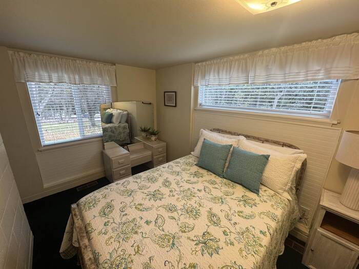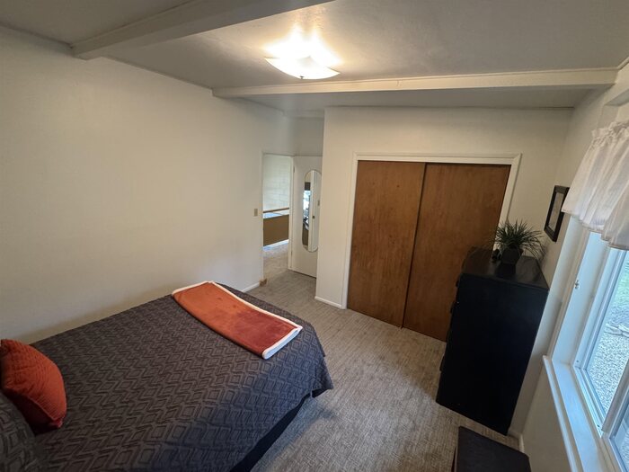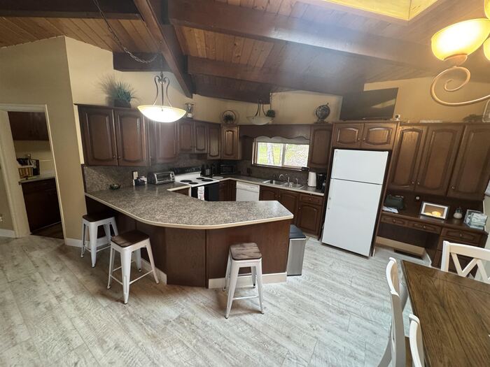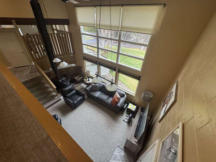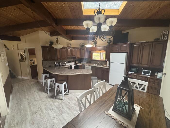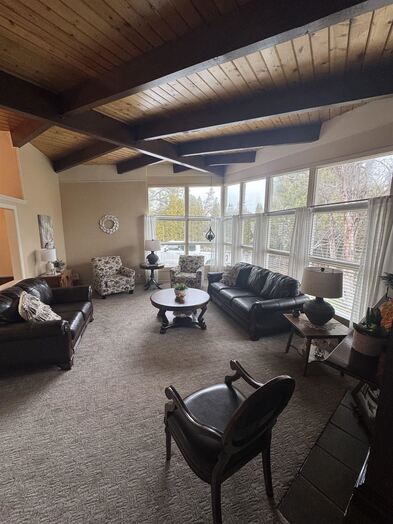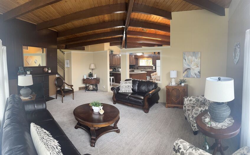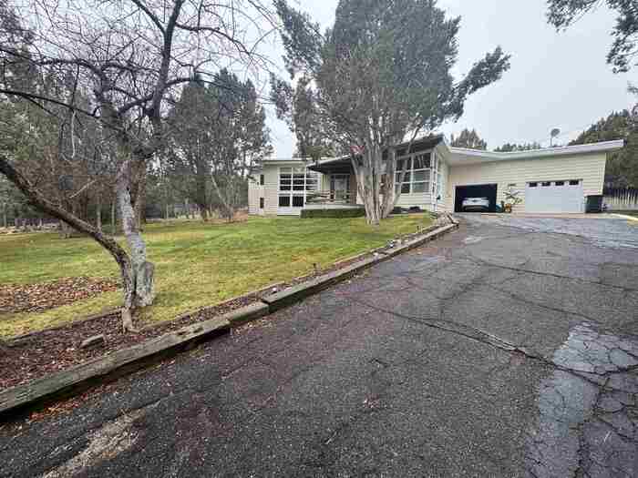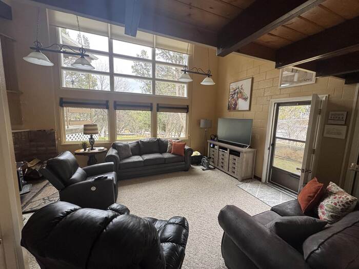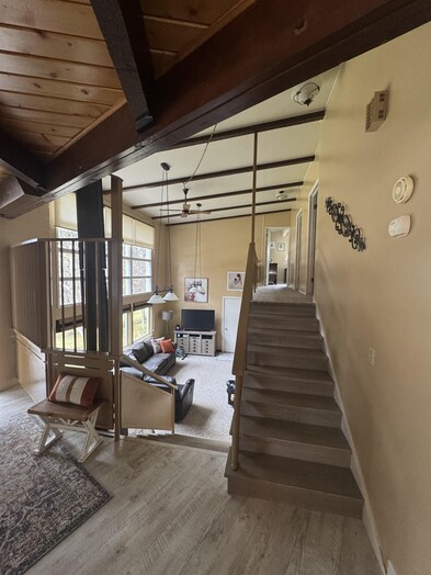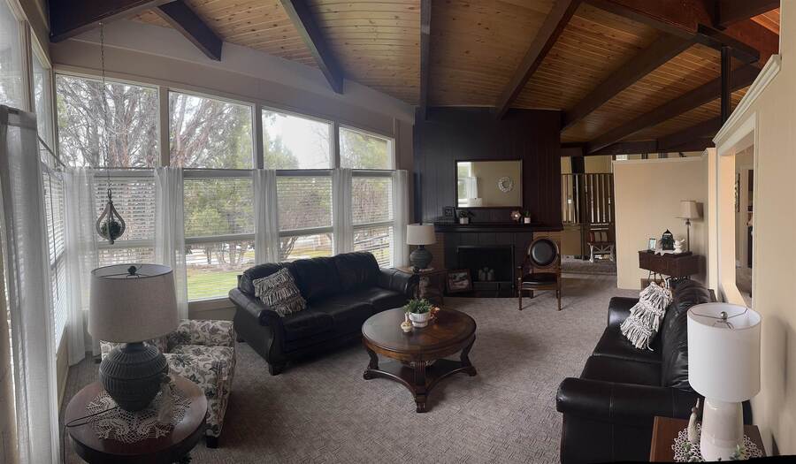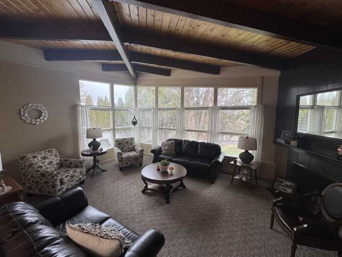 Nestled among mature trees on a serene .88-acre lot, this stunning home offers privacy, natural beauty, and frequent visits from local wildlife. Thoughtfully designed with exceptional architecture, the interior features soaring vaulted ceilings, exposed beams, and rich tongue-and-groove hardwood, creating a warm yet dramatic living space. Expansive walls of windows flood the home with natural light while perfectly framing peaceful views of the surrounding trees—bringing the outdoors in from every angle. The home offers 4 bedrooms and 2.5 bathrooms, all updated and meticulously maintained, making it truly move-in ready. Recent improvements include newer windows, a new furnace and A/C, new floor coverings, and an updated roof, ensuring both comfort and peace of mind. Additional highlights include an oversized two-car garage, a sprinkler system, and beautifully maintained grounds that complement the natural setting. This is a rare opportunity to own a private, immaculate home that seamlessly blends modern updates with timeless design and a breathtaking woodland setting.