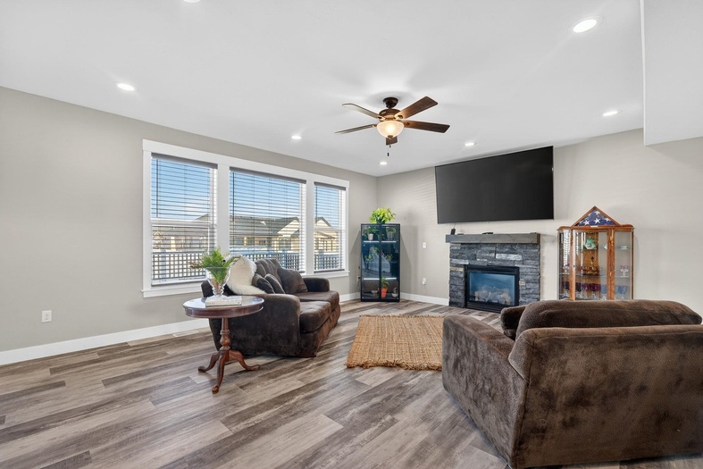 Living Room, Kitchen, Dining Room, Laundry Room, Fireplace