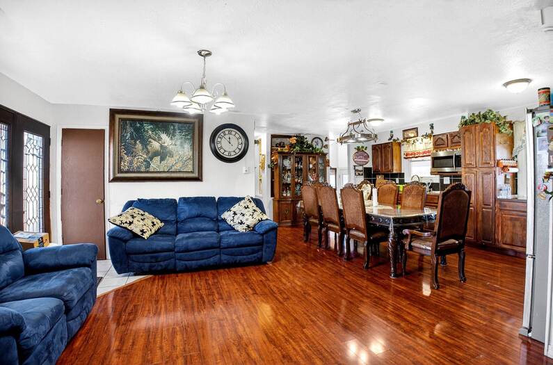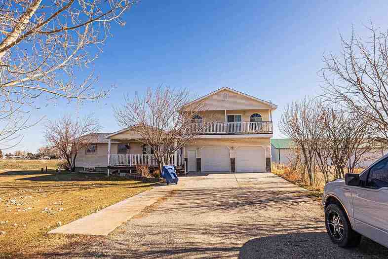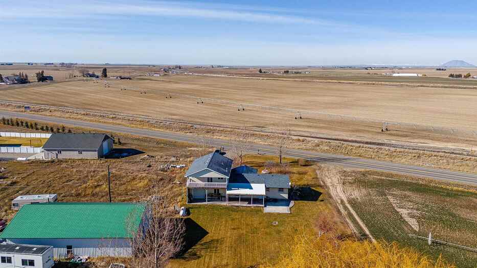 Here is your chance to have a well maintained home with just over an acre on the outskirts of Blackfoot. This home has a large master bedroom upstairs with its own walk out patio, an extra half bathroom in the garage, and enough land to add a shop, more grass, or whatever your heart desires with no HOA! There is a large family room in the basement currently being used as another bedroom that can easily be switched to fit the family and entertain! You will love the backyard covered porch and patio that has the drive through garage for your guest to have fast bathroom access with never having to go inside the house. Don't miss out and come check it out today!