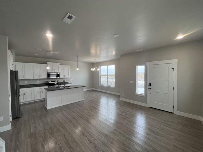 Don't miss this spacious and stylish 4-bedroom, 2.5-bath townhome designed for modern living. The open-concept main level offers a seamless flow between the kitchen, dining, and living areas—perfect for both everyday life and entertaining. The kitchen is thoughtfully designed with quartz countertops, abundant cabinetry, and plenty of workspace. Upstairs, the private primary suite is a true retreat, featuring a luxurious en-suite bath with **double sinks**, a **separate tiled soaking tub and walk-in shower**, and a **private water closet**. Completing the suite is a **large walk-in closet**, providing exceptional storage and functionality. Three additional generously sized bedrooms and a full bath offer flexibility for family, guests, or a home office. Additional highlights include a **2-car garage** and modern finishes throughout. Located in an exciting new development with the future **Chubbuck City Park** just steps away, this home offers upcoming green space, recreation, and a strong sense of community. A perfect blend of comfort, convenience, and contemporary design.