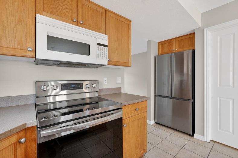 This spacious 2-bedroom, 1.5-bathroom condo has been beautifully updated from top to bottom and offers easy, carefree living! Recent upgrades include fresh three-tone paint throughout, stylish LVP flooring, and an inviting eat-in kitchen with tile flooring and a breakfast bar. A $3,000 countertop allowance is included so you can select the perfect new countertops to match your style, along with updated appliances for modern convenience. Just off the kitchen is a large dining area that opens to a private patio—perfect for relaxing or entertaining. The main level also features a convenient laundry room with extra storage space and a half bathroom for added everyday comfort. Upstairs, you'll find two generously sized bedrooms with spacious closets and a full bathroom featuring a brand-new tub and surround. Additional highlights include gas forced-air heating, new central air conditioning, a maintenance-free exterior, new water heater and a garage for extra storage. Enjoy low-maintenance living with an affordable HOA that covers yard care, snow removal, and landscaping—making this a wonderful opportunity for comfortable and stress-free homeownership!