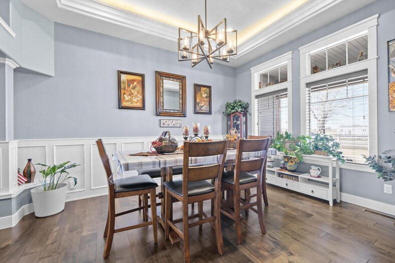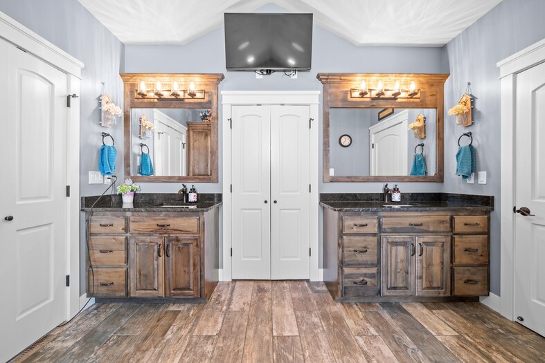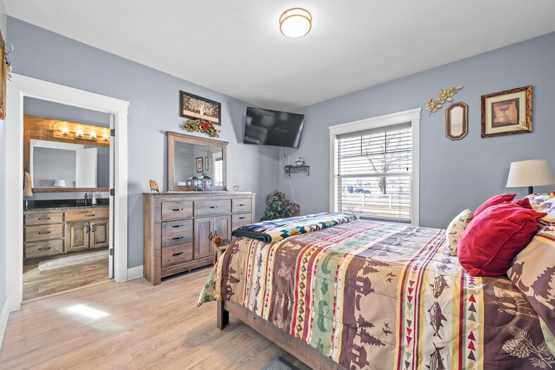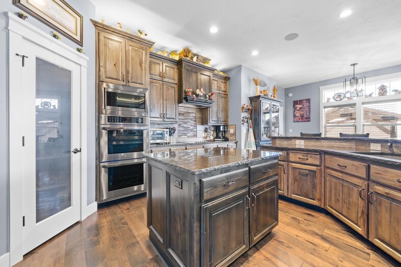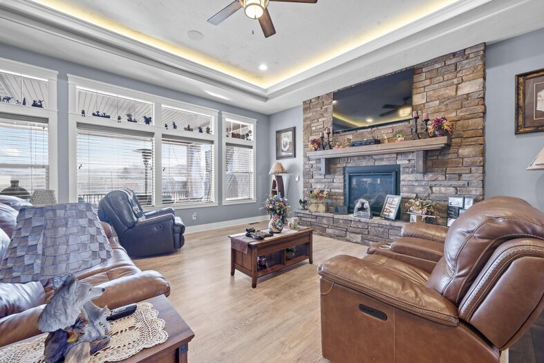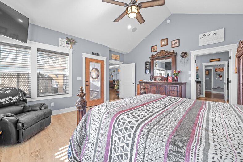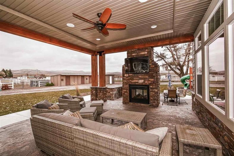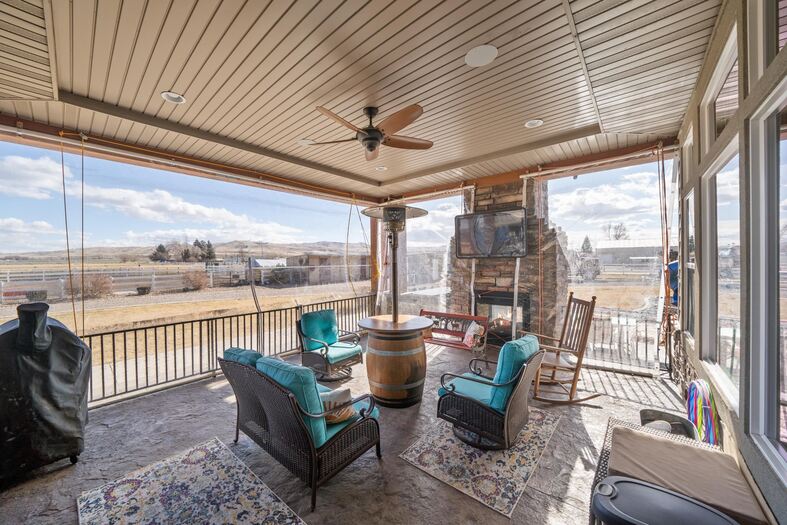 Experience the perfect blend of space, comfort, and Idaho country living with this exceptional 10-acre property. Featuring a massive 46x60 shop, multiple corrals, outbuildings, and room to grow, this property is ideal for those searching for Idaho homes with acreage, horse property, or rural living opportunities. Inside, the open-concept home offers 10-ft ceilings, crown molding, tray ceilings, granite countertops, and custom built-in cabinetry throughout. The kitchen features a large center island, corner pantry, and oversized breakfast bar overlooking the living area—perfect for entertaining. The private primary suite includes a vaulted ceiling, patio access, spa-style bath with jetted tub, walk-in shower, dual vanities, and a massive walk-in closet. A flexible bonus room off the suite works great as an office or hobby space. The main level offers three additional bedrooms, two full baths, mudroom, built-in desk, and laundry room. Upstairs features a spacious living area, theatre room, bedroom, and full bath. Enjoy the covered patio with double-sided fireplace, outdoor bar, mounted TV, and sweeping property views. The back 5 acres are divided into four 1.25-acre lots, offering added investment or expansion potential.