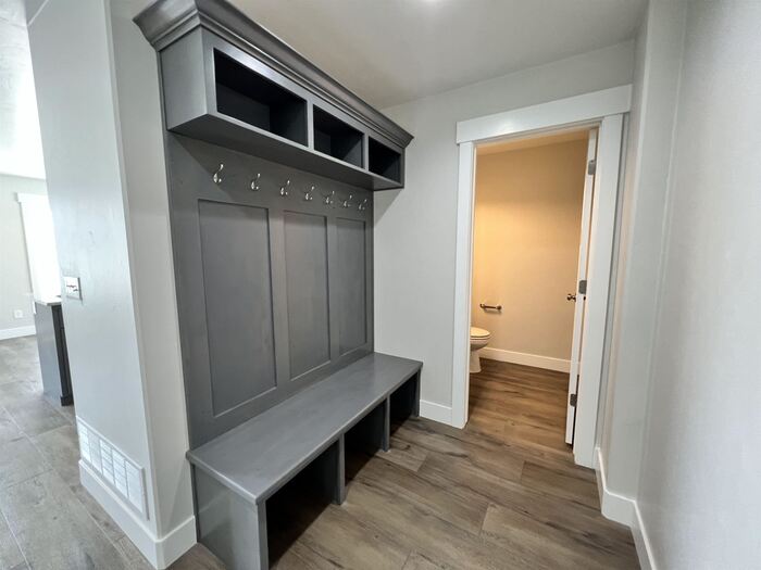 This beautiful two-story home features a thoughtfully designed floor plan with seamless flow throughout the main level, maximizing both space and functionality. Just off the garage, you'll appreciate the convenient drop zone complete with a built-in bench and half bath, perfect for everyday living. Upstairs, the well-planned layout offers all bedrooms together along with a centrally located laundry room for added convenience. The kitchen is as functional as it is stunning, showcasing soft-close cabinetry and pull-out drawers for optimal organization and ease. The spacious primary suite is a true retreat, featuring dual sinks, a private water closet, a large walk-in shower, and an expansive walk-in closet. The unfinished lower level provides excellent potential to add a family room, fourth bedroom, and third full bathroom, ready for your personal touch. Additional highlights include fiber internet availability for high-speed connectivity and Fort Hall irrigation to help reduce utility costs. Completed pictures are of previous built homes with this floor plan. Construction pictures will be updated as it progresses.