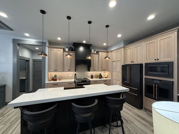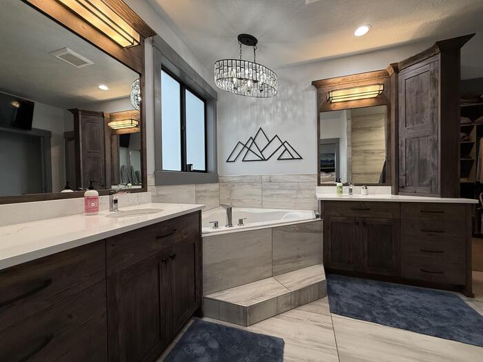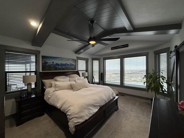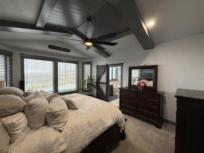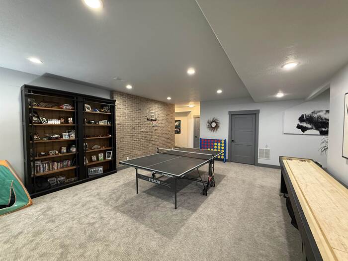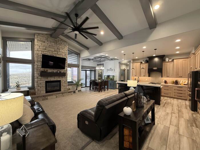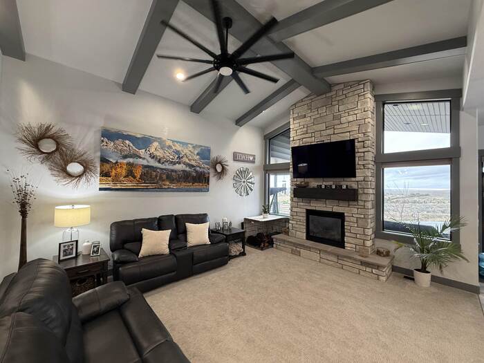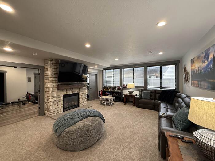 Superior craftsmanship and thoughtful, intelligent design come together beautifully in this exceptional home—made even more desirable with no backyard neighbors and breathtaking views. From the moment you step into the stunning entryway, you'll notice the attention to detail and quality finishes that truly set this property apart. The spacious and inviting layout offers 6 bedrooms and 3 bathrooms, providing plenty of room for family, guests, and entertaining. The expansive basement family room is a standout feature, complete with daylight windows that fill the space with natural light and a cozy corner fireplace that creates the perfect gathering spot year-round. A second gorgeous fireplace upstairs adds warmth and charm to the main living area. The kitchen and bathrooms showcase custom cabinetry, beautiful quartz countertops, and detailed tile work throughout. A luxurious walk-in shower, elegant niches, and intricate ceiling trim details highlight the craftsmanship found in every corner of the home. The well-designed mudroom includes built-in cabinetry for added organization and convenience. You are sure to appreciate the oversized 6-car garage along with dedicated RV parking, offering ample space for vehicles, toys, and storage. Step outside to enjoy the concrete patio that opens to a fully landscaped backyard, complete with full vinyl fencing for privacy and low maintenance. With stunning views and no rear neighbors, this outdoor space is ideal for relaxing or entertaining. This home truly elevates everyday living with its combination of space, style, and superior finishes. Come experience it for yourself!