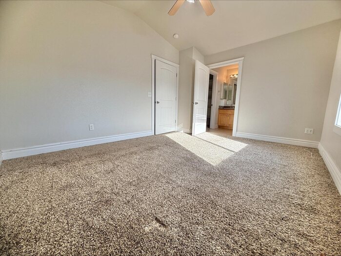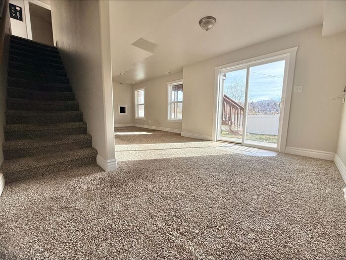 Charming twin home with beautiful views and conveniently situated next to the golf course and close access to I-15 . The inviting main level features a bright living room with a large picture window, a U-shaped kitchen with custom countertops, staggered cabinetry, and matching black appliances, plus a cozy dining nook. Upstairs offers three bedrooms on one level with nearby laundry for added convenience. The spacious primary suite includes a jetted tub and walk-in closet. The walk-out basement provides additional living space with a large family/rec room, full bathroom, and extra storage. A great combination of comfort, views, and location close to recreation and golf.