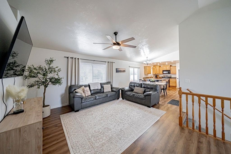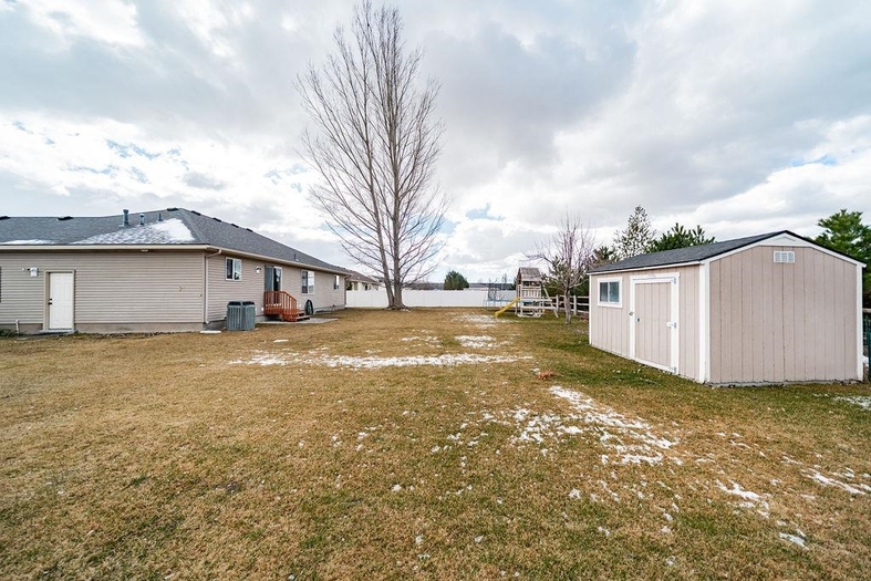 PRICED TO SELL! Spacious 5 bedroom 3 bath home with an open concept layout and room for everyone! Built in 2006, this 2,622 sq ft home offers comfortable living with a fully finished basement providing additional space for children, guests or entertainment. The main bedroom suite features a full size walk-in newly remodeled shower for a relaxing retreat. Step outside to enjoy a fully fenced backyard with mature lawn, newly planted fruit trees, child's dream playland, plus a convenient storage shed for tools and outdoor gear. This well maintained property offers both functionality and outdoor enjoyment- perfect for everyday living!