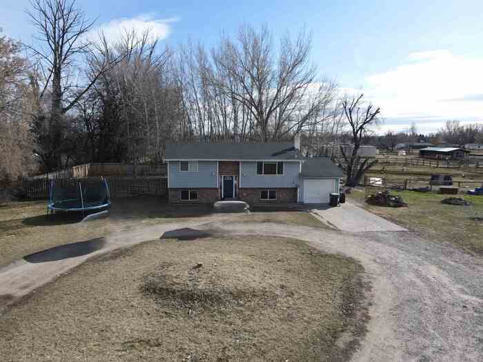 Welcome to this charming 4-bedroom, 2-bath split-entry home on 1.04 acres. The main floor offers two bedrooms, one bathroom, living room and kitchen. Downstairs you'll find two more bedrooms, a bathroom, a cozy family room, and utility/laundry. Fresh interior paint and new basement living room carpet gives this home a new, fresh feel. Outside, you'll love the large shade trees, fully fenced back yard and wide open space -- perfect for animals, hobbies or simply enjoying the peace and quiet of country living. If you've been looking for room to spread out while still being close to town, this is the property for you! Buyer to verify sq ft.