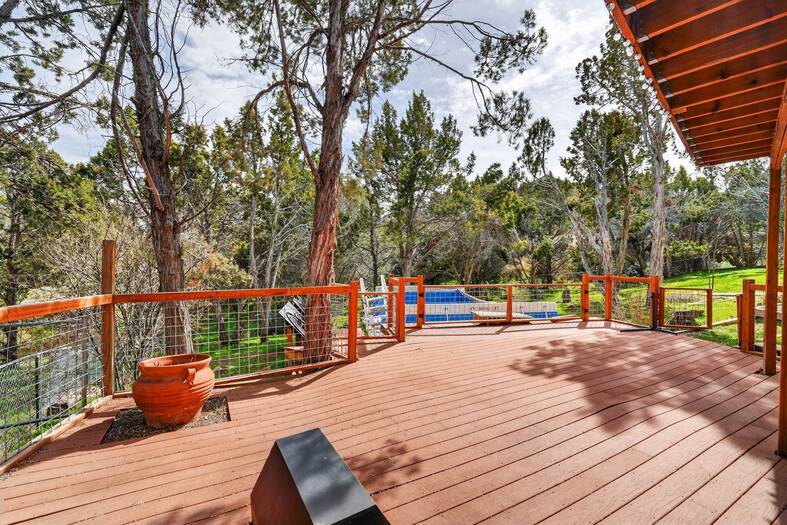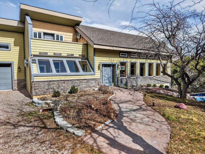 Welcome to your dream retreat in the desirable Johnny Creek area on Pocatello's scenic south side. Just minutes from golf, hiking, and biking, this 5-bedroom, 2.5-bath home sits on nearly one acre and offers comfort, efficiency, and self-sufficiency. Built with premium ICF block construction, it provides outstanding durability, insulation, and energy efficiency. Geothermal heating and cooling, plus a passive solar wall between the sunroom and living room, help lower utility costs year-round. The attached sunroom offers abundant natural light, while the connected greenhouse with water access supports year-round growing. Outside, enjoy a large fenced yard and enclosed garden area with 4 fruit trees, raspberries, raised beds, and drip irrigation to each tree.