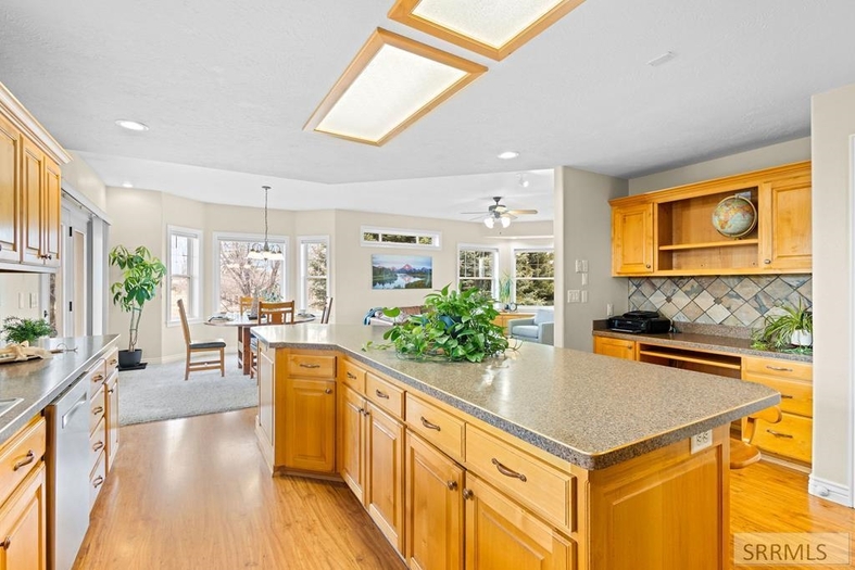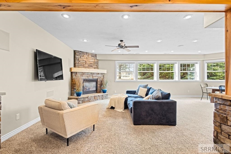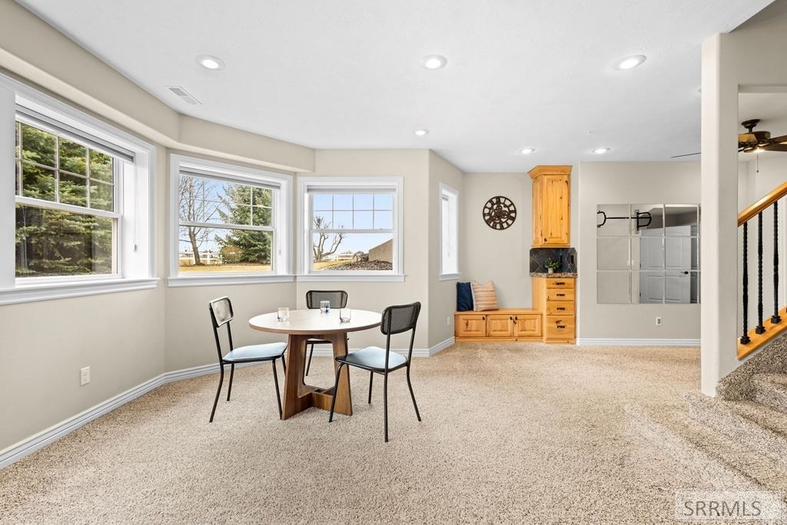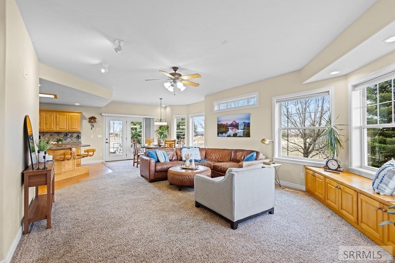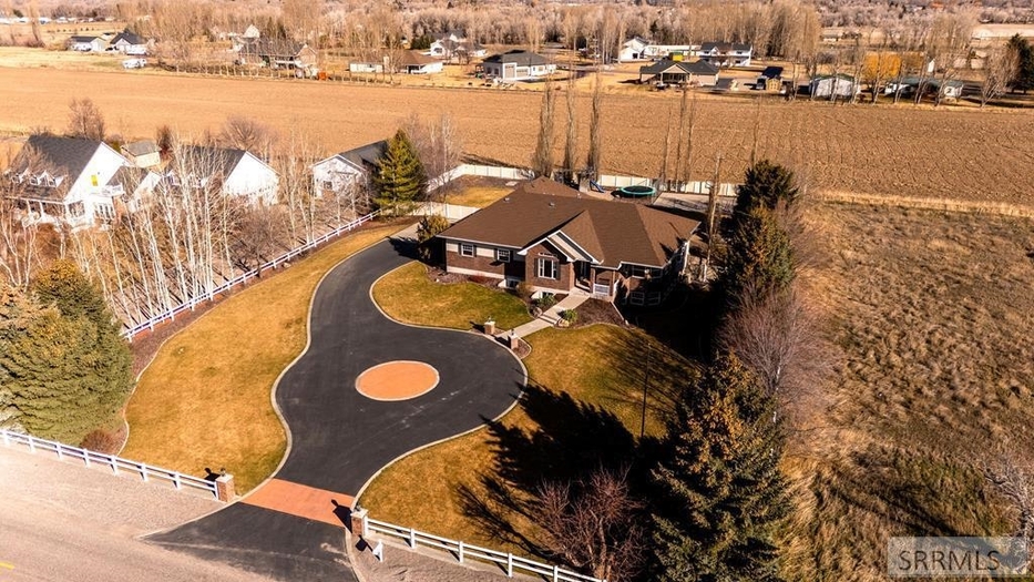 Rigby, Idaho 6-bedroom home on 1 acre near Rigby Lake. Located on a quiet rural road in Jefferson County, this well-maintained 3,550 sq ft home offers privacy, space, and quick access to town amenities. The property backs to farmland with open views and beautiful sunsets, just minutes from shopping, schools, and recreation in Rigby. Built in 2003, the home features 6 bedrooms and 3 bathrooms with a warm, family-friendly layout and abundant natural light. Large windows showcase mature trees and landscaped grounds. The open kitchen with bar seating flows into the great room and connects to the covered patio, creating ideal space for everyday living and hosting. The fully finished daylight basement includes a spacious family room, play area, and additional bedrooms—perfect for guests, teens, or multigenerational living. The landscaped backyard is designed for enjoyment with mature trees, fenced yard for pets, garden area, and a high-quality sport court for basketball or pickleball. Oversized 3-car garage and circular driveway. Enjoy acreage living in Rigby, Idaho with walkable access to Rigby Lake and nearby hiking, fishing, kayaking, and year-round recreation.