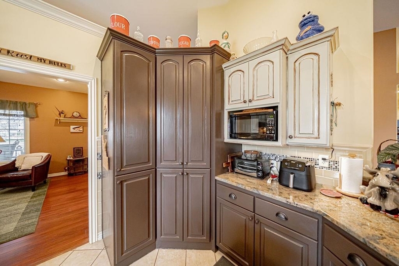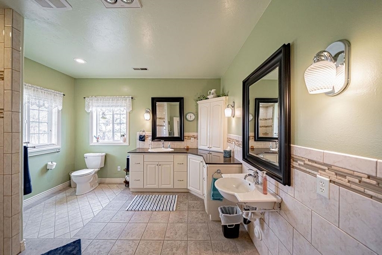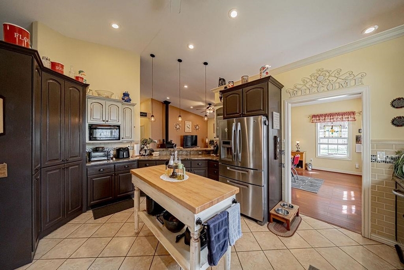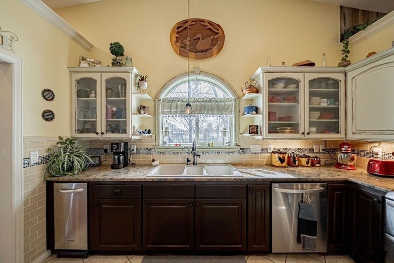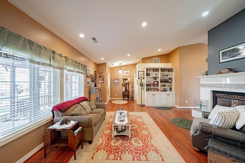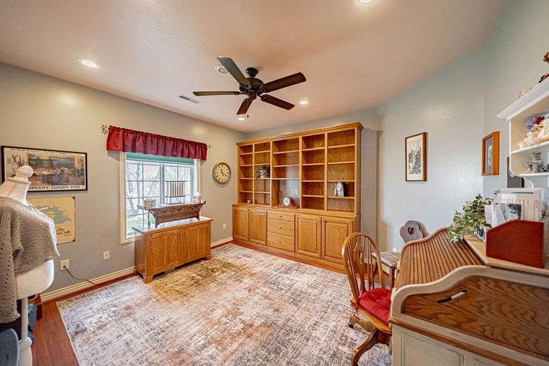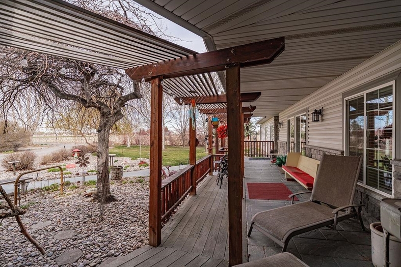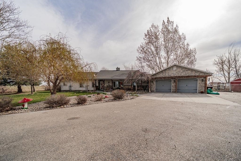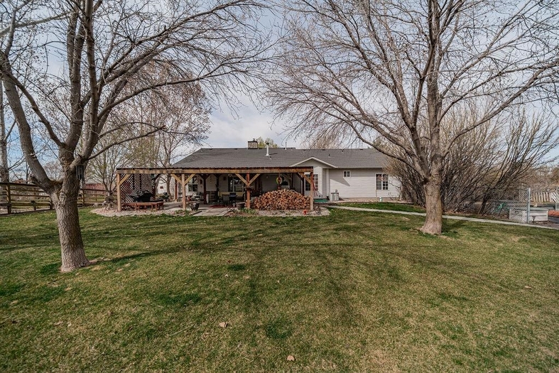 Beautiful custom country home situated on 1.19 fully landscaped acres, offering a rare combination of privacy, space, and exceptional outdoor amenities. The park-like setting features mature decorative trees, a rock and flower garden, fruit trees, grapevines, walking paths, raised garden beds, a tranquil pond, fire pit with a gathering area, horseshoe area, and a swimming pool—perfect for outdoor living and entertainingInside, this spacious 2,928 sq ft single-level home is thoughtfully designed for comfort and functionality. It features two generously sized bedrooms with built-ins and custom closets, plus a luxurious primary suite with a custom bathroom, dual vanities, walk-in shower, and an attached office/sewing room with built-in shelving.The open-concept layout includes a formal living room, dining area, and a great room with breakfast nook, all enhanced by vaulted ceilings. This exceptional property offers the perfect blend of indoor comfort and outdoor lifestyle—move-in ready and truly a must-see.