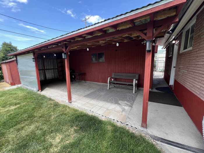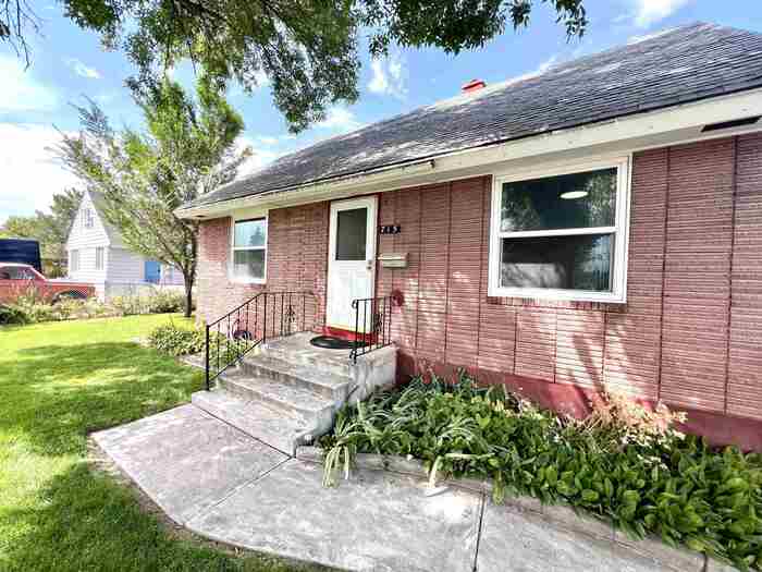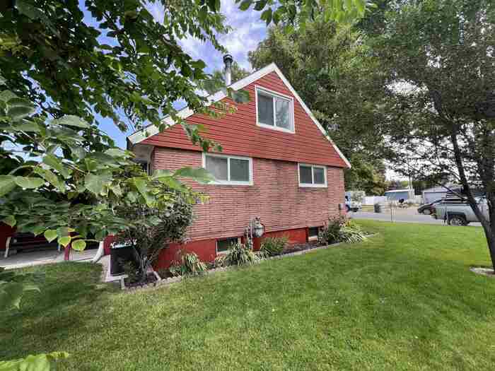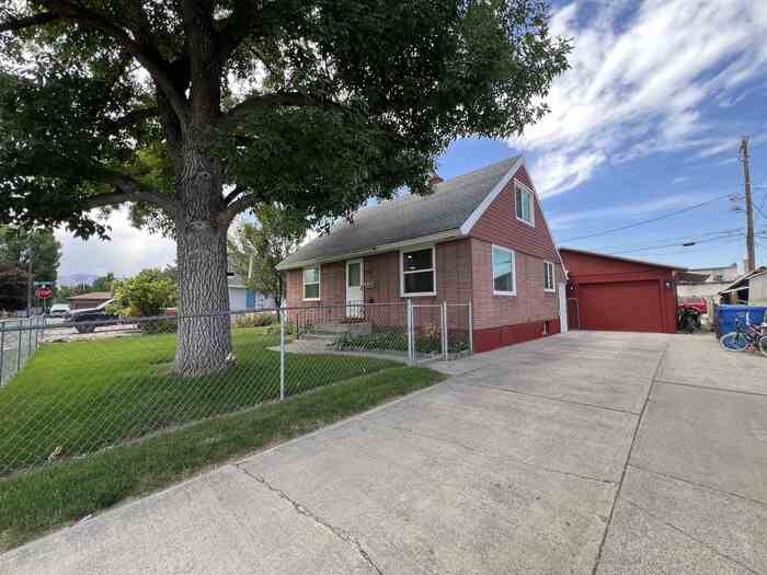 Charming Mid-Century Brick Beauty with Endless Character! This sharp brick home built in the 1950s, where timeless charm meets modern updates! Offering 4 spacious bedrooms and 1 full bath, this classic residence is full of warmth, personality, and thoughtful touches throughout. Nestled on a mature lot, you'll love the lush green lawn, established trees, and a dedicated garden area. The covered patio provides a cozy spot for outdoor dining or relaxing in the shade, rain or shine. A standout feature of this property is the oversized two-car garage/shop with drive-through access to the alley, making it ideal for hobbyists, extra storage, or those who love to tinker. Furnace and AC installed 2020, Water Heater 2023. Inside, you'll find many tasteful updates that enhance the home's original character while providing everyday comfort. From the gleaming original details to the modern improvements, this home has character in spades. Don't miss this rare blend of vintage style and practical living—schedule your tour today!