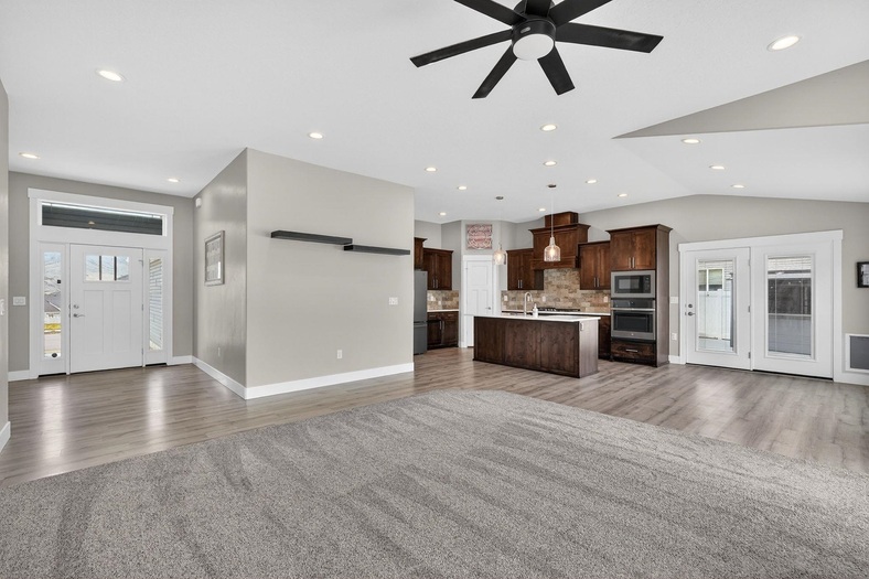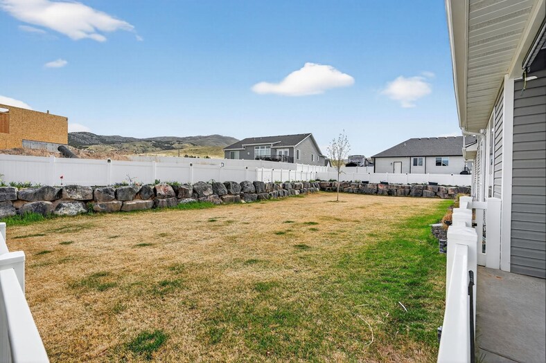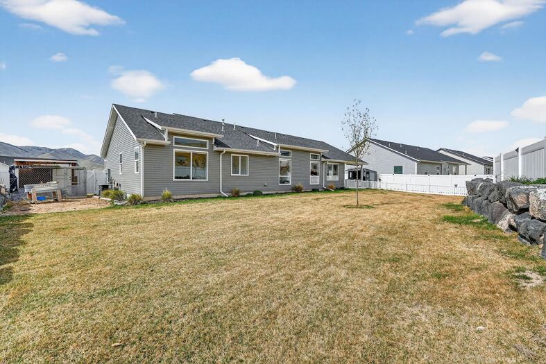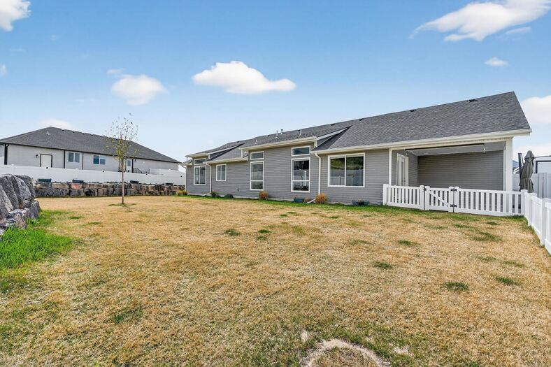 This stunning custom-built three-bedroom, two-bath home offers a spacious and well-designed layout with 1,739 sq. ft. of living space, situated on approximately one-third of an acre. The property features a three-car garage, including an extra-deep third bay—perfect for larger vehicles, storage, or a workshop area. Inside, you'll find an inviting open-concept floor plan that seamlessly connects the living, dining, and kitchen areas, creating an ideal space for both everyday living and entertaining. The large primary suite provides a comfortable retreat, complete with a well-appointed en-suite bathroom featuring a soaking tub, beautifully tiled walk-in shower, and quality finishes throughout. The home showcases numerous upgrades, including three-tone paint, granite countertops, custom cabinetry, and extensive tile work. The kitchen stands out with its stylish tile backsplash, including tile behind the gas stove, adding both function and visual appeal. Every detail has been thoughtfully designed, making this home difficult to replicate at this price point. Step outside to a fully landscaped yard that is 100% complete, featuring a full sprinkler system, established flower beds, and an attractive rock retaining wall. The covered patio provides the perfect setting to relax and enjoy the evenings, while the included hot tub adds an extra touch of comfort. A custom-built shed creates a great space for outdoor entertaining, hobbies, or additional storage. Additional exterior features include an asphalt RV pad for extra parking and convenience. The home is also equipped with an EV electric vehicle charger with a 50 amp dedicated breaker, an additional 30 amp 30 amp RV plug making it ready for modern living. Located in a highly desirable area south of Pocatello, this property offers easy access to nearby BLM land—ideal for outdoor enthusiasts who enjoy walking, hiking, trail riding, and exploring Idaho's natural beauty.