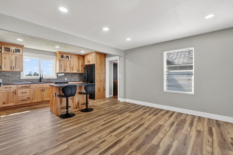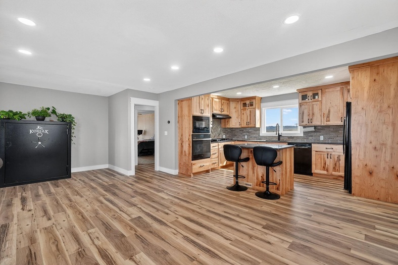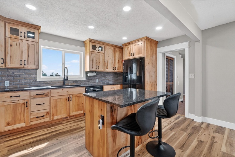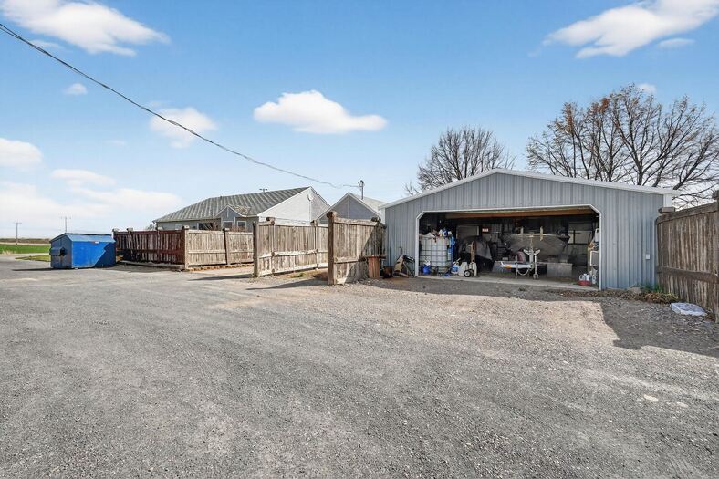 Step into this fully updated home and discover the perfect blend of space, functionality, and modern updates. This spacious 3 bedroom 2 bath main floor living ranch style home sits on an acre of land with 2 separate SHOPS 24' x 30' & 15' x 25'. The updated kitchen features natural wood cabinetry, solid surface granite countertops, newer appliances with a gas range, fridge and built-in dishwasher & microwave. You'll love the kitchen island accented by canned lighting, a stylish backsplash with under counter lighting and LVP flooring through the entire open concept floor plan. Enjoy peace of mind with major system upgrades, including wiring, a newer furnace and AC unit. Whether you're looking for room to spread out, space to work, or a move-in-ready home with modern finishes, this property delivers it all.