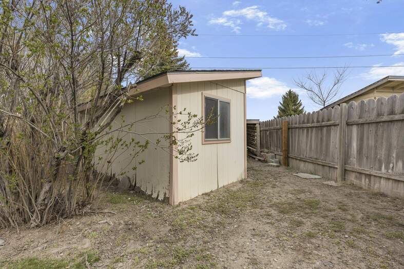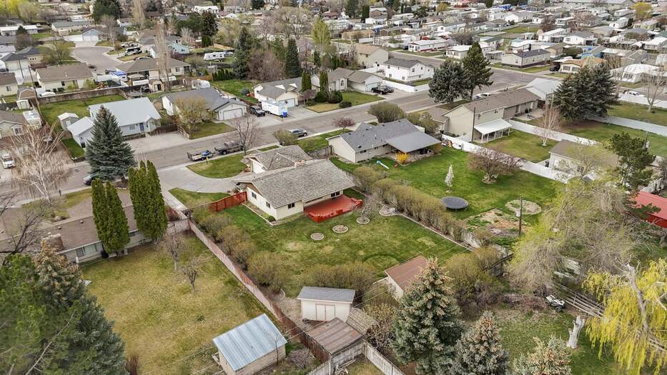 You do not want to miss this comfortable and charming, one level home, in Blackfoot! The home has a spacious back yard and the family room with large windows providing a picturesque look into the backyard, with a large covered deck. This home is a short drive or walk to the greenbelt, with the golf course nearby and a short drive to schools and shopping. The home has a two-car garage, with cabinets and storage space. There is a, small concrete pad for storing a boat or trailer. The home has a large fenced back yard with an apple tree, flower garden spaces, two storage sheds and a third open storage building. The yard has curbing to accent the planting beds and trees. Inside you will find a sunken family room off of the living room space, a functional kitchen, with two bedrooms and two bathrooms. The laundry room is conveniently located near the kitchen. This home features a forced air natural gas furnace.