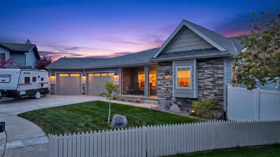 This is an incredible home recently built in 2018. This home has a full lawn and sprinkler system as well as a full vinyl fence. There is an RV pad as well as an incredibly spacious 3 car garage which includes a closet for the water heater and a radon mitigation system. The interior features an open floor plan with well kept flooring and granite countertops. The laundry room can be accessed from the hallway by the garage and has an additional access through the master closet for ease of access and functionality. There are 3 bedrooms and an additional office room that could also function as a bedroom. Above all this, is the incredible views that this home offers. The covered patio in the back with additional lighting puts you in perfect position to enjoy views of the town of Pocatello from your backyard. The fire pit and BBQ grill in the backyard are included and are individually fed with natural gas so there is no need for propane. Don't miss your chance to see this home now! OPEN HOUSE THIS SATURDAY APRIL 18th FROM 10-12