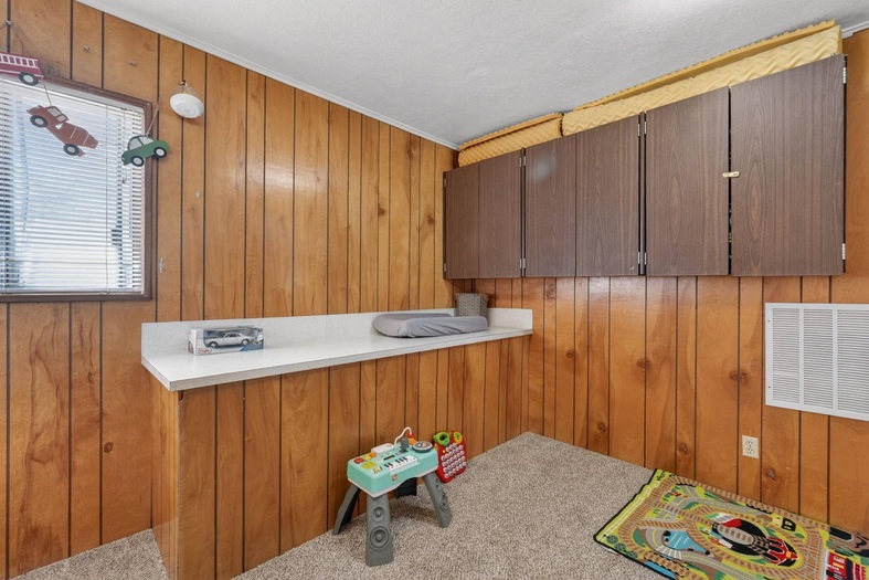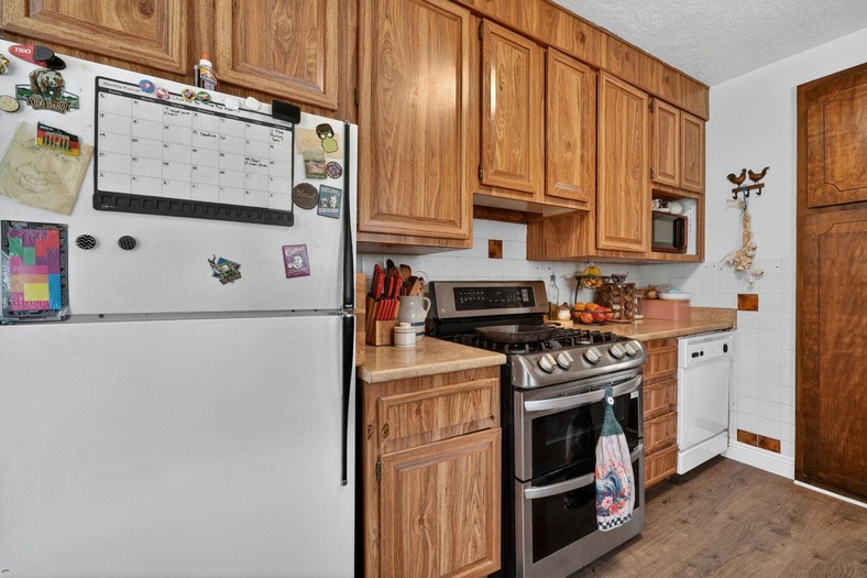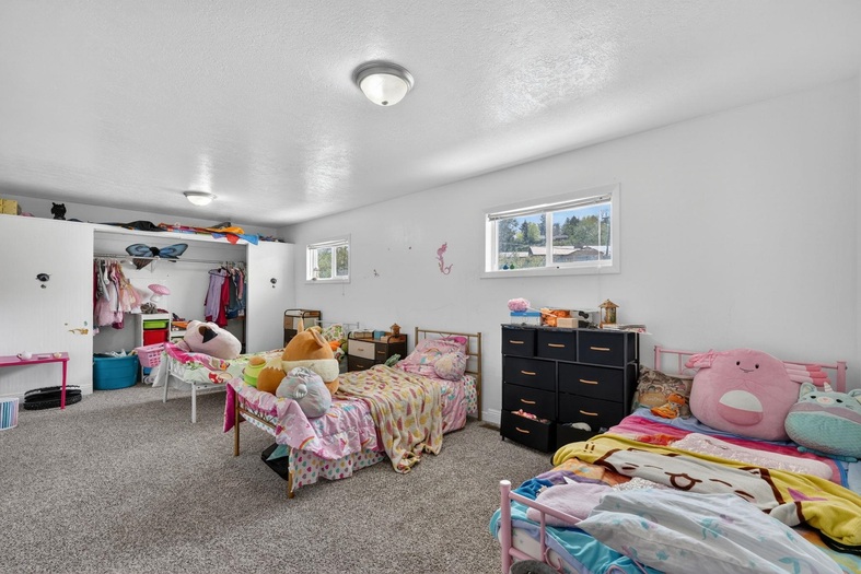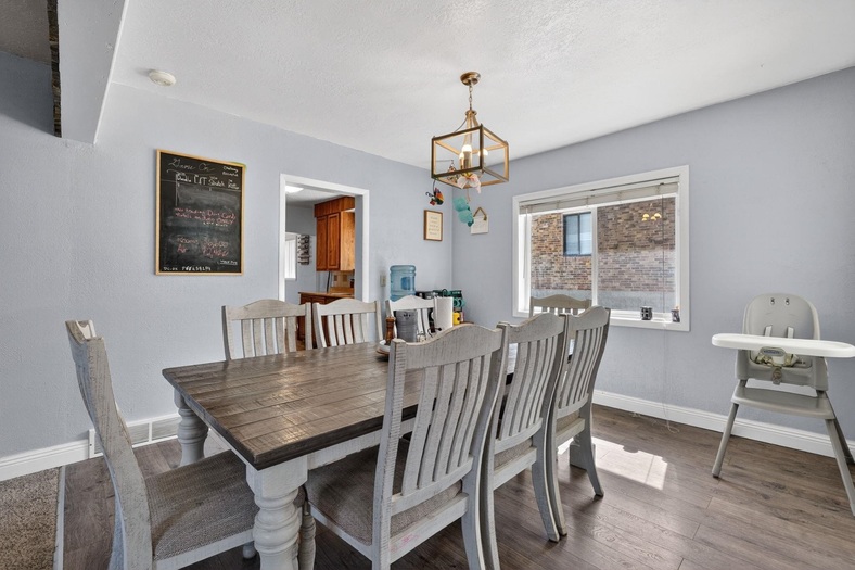 Welcome to this spacious and well-maintained two-story home offering comfort, functionality, and thoughtful updates throughout. The upper level features two generously sized bedrooms along with an additional bedroom, complemented by 1.5 bathrooms for convenience. On the main floor, you'll find a beautifully designed galley kitchen with an efficient layout that maximizes both space and workflow, featuring ample cabinetry, generous counter space, and easy access to the separate dining room—perfect for both everyday living and entertaining. The large living room is filled with natural light and anchored by a cozy fireplace, creating a warm and inviting atmosphere. The home also includes a two-car garage and a basement with an oversized bedroom, providing plenty of space for family or guests. Outside, enjoy ample parking for vehicles, RVs, or toys. Major updates include a new roof, furnace, and A/C unit all completed in 2023, offering peace of mind and energy efficiency for years to come.