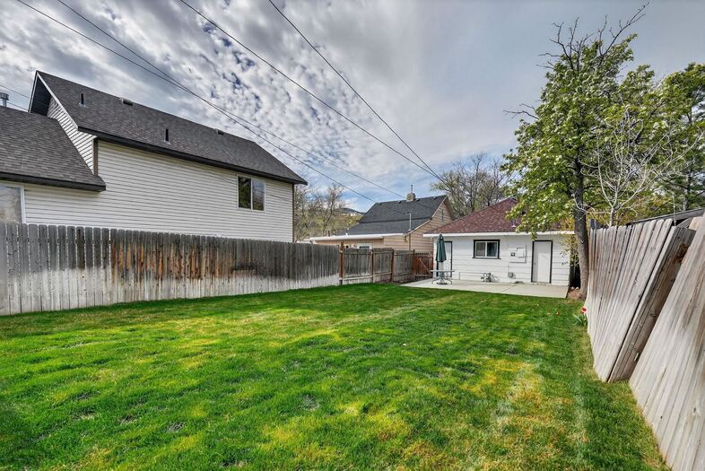 Come see an awesome single level home with tons of personality. With its new landscaping and sprinkler system the back yard is a fantastic place for fun in the summer. The new concrete patio is so charming for entertaining BBQ's with family and friends. Off street parking and a newer storage shed make this a house you will want to see. Carpet in second bedroom was installed in 2022. Washer and Dryer included was purchased in 2025, as well as most of the blinds throughout. You won't want to miss out on this one