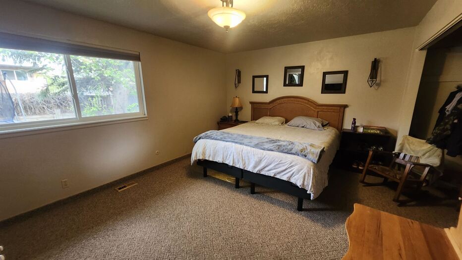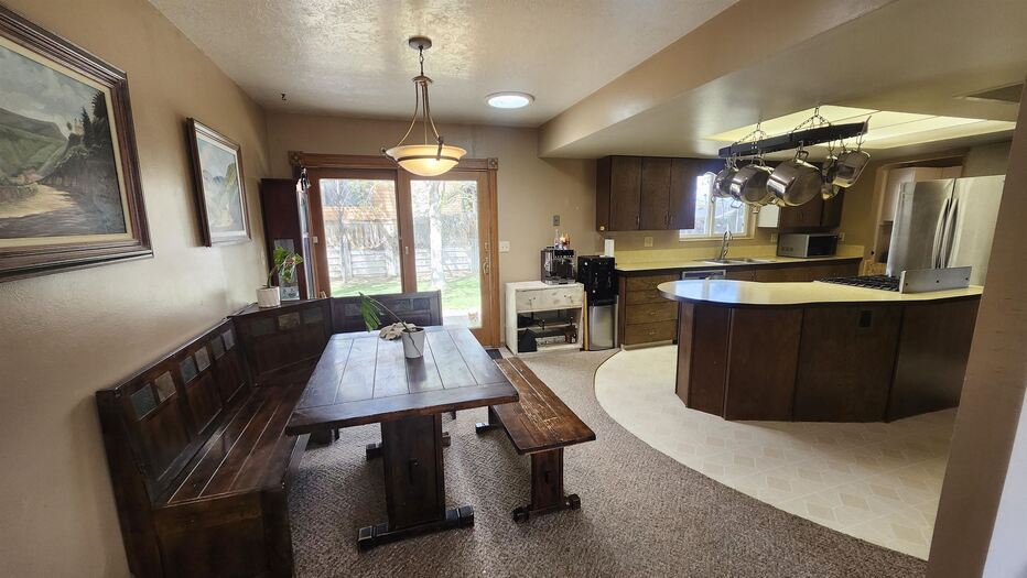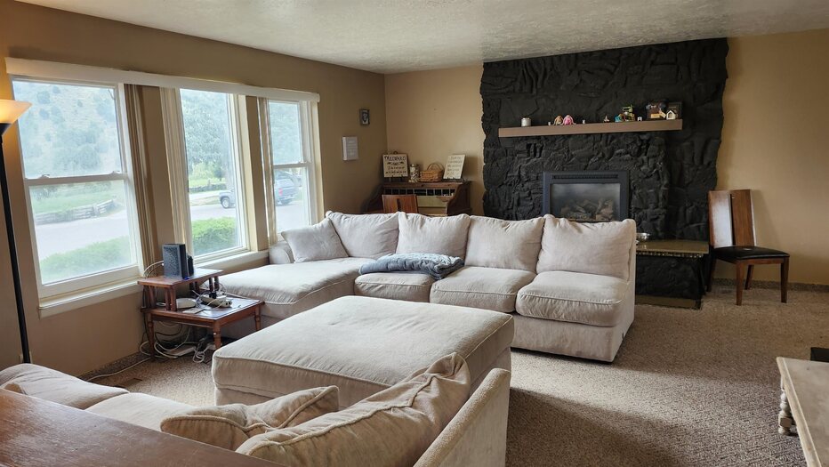 West Bench Home! Bright open living room with gas fireplace. This great 3 bed 2 bath home with pretty valley views! Good location with private backyard and stamped concrete patio plumbed for gas BBQ. Large kitchen with center island, gas stove, oven, fridge, lots of cupboard space, laundry with extra fridge and storage. The downstairs has room for an additional bedroom, rough framing complete. House has a brand new A/C and furnace installed in March of 2024. Back yard is fenced for pets and has an 8x10 storage shed, shade trees, and full sprinkler system. Come take a look!