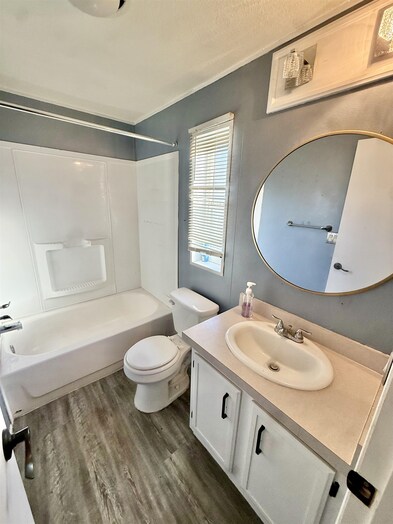 Don't miss this beautifully maintained and well-loved home!  From the moment you step inside, you'll appreciate the bright, open-concept layout featuring a spacious living area, updated LVP flooring, and refreshed cabinet hardware in the kitchen.The split-bedroom design offers privacy, with two bedrooms and a full bath located just off the main living space. Tucked down the hall, you'll find a conveniently located laundry area right next to the generously sized primary suite. The primary bedroom is impressively spacious and includes a large walk-in closet with excellent storage. The en-suite bathroom is thoughtfully designed with great space.Outside, enjoy a newer front porch and roof, along with a great backyard area ideal for relaxing or entertaining. Situated in a quiet cul-de-sac, this home offers 2 big sheds for extra storage and 2 concrete parking space. The lot is one of the best in the entire community with lots of open space around it! Lot rent is $460 per month.
