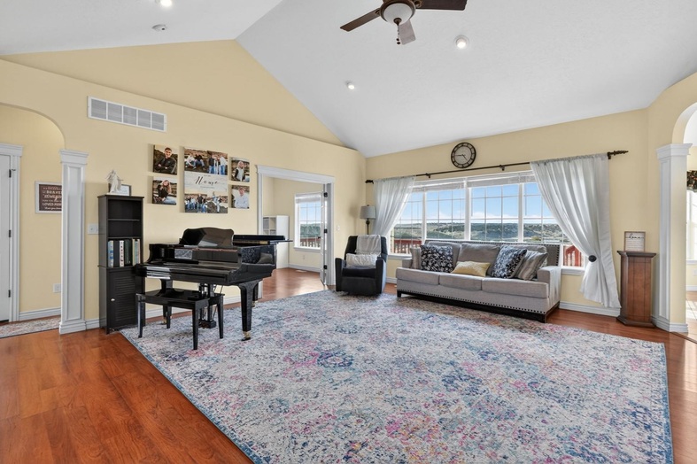 Breathtaking Setting with Beautiful Backyard Views of the Snake River Corridor. Bordered by BLM and BOR public lands, this gorgeous home sits on over 2 acres and is a true MUST SEE! The beautifully landscaped property features a 30x30 metal shop, open sided metal lean-to, fenced pasture, garden area, in-ground basketball hoop, RV parking, 2 car garage, and plenty of room to grow! With more than 3,000sqft of living space, this home highlights a well-designed layout offering amazing views, vinyl floors, granite countertops, and a beautiful kitchen with custom cabinetry. Direct deck access from the dining area, a dedicated office with built-ins, and large living spaces throughout. The fully finished basement includes a bonus room, spacious laundry room, and convenient exterior walk-out to the patio. Enjoy endless trails and wide open spaces, adventure awaits!